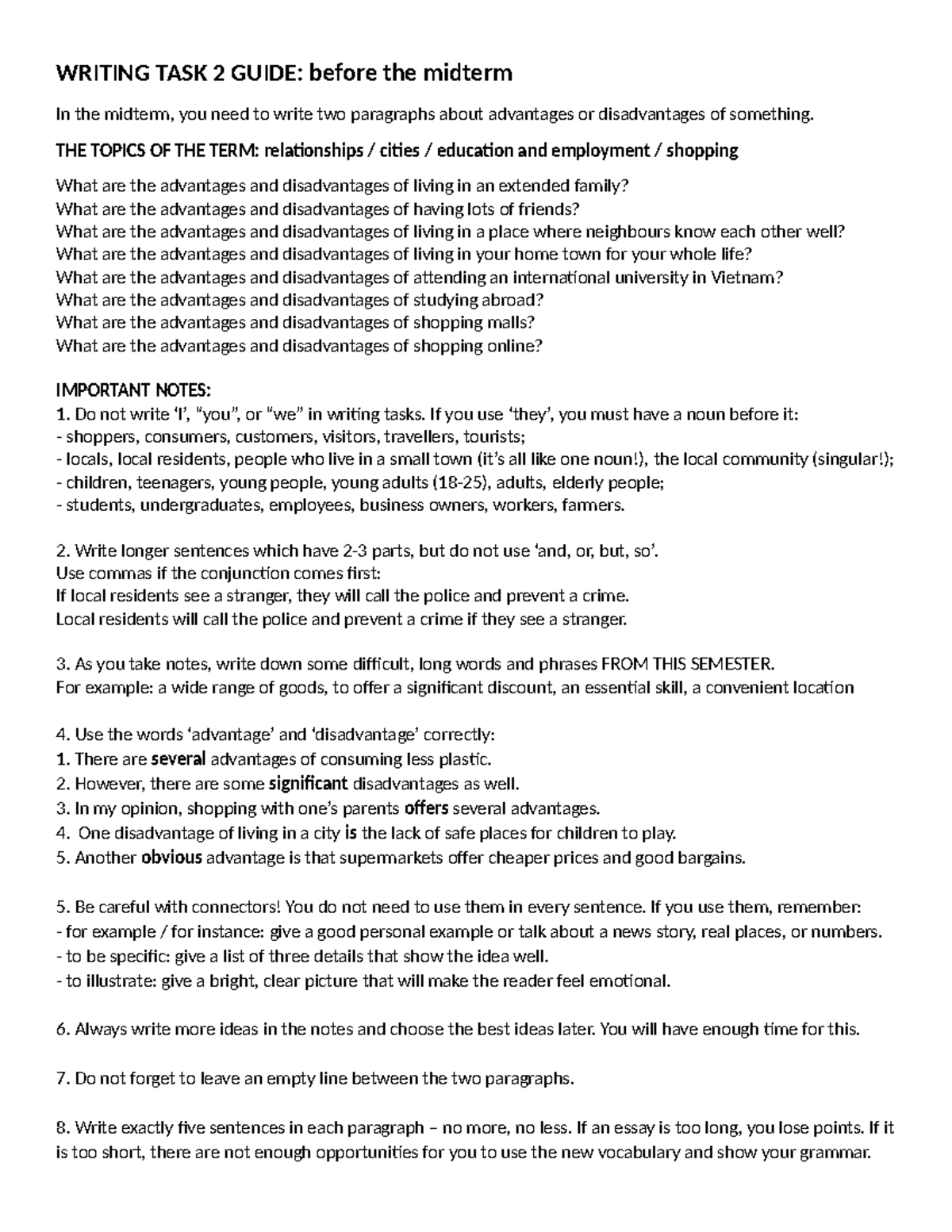 Writing Task 2 Guide - before the midterm - WRITING TASK 2 GUIDE ...