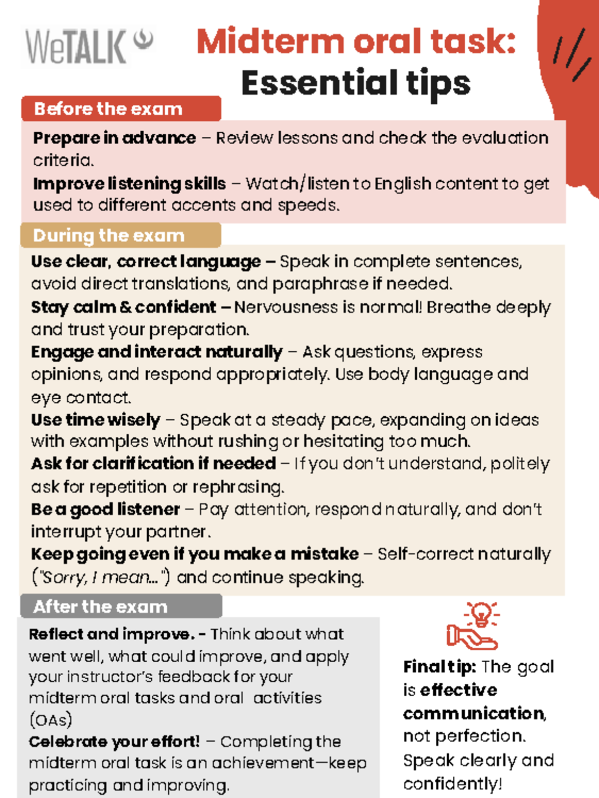 Midterm Oral Task Tips: Effective Communication Strategies - Studocu