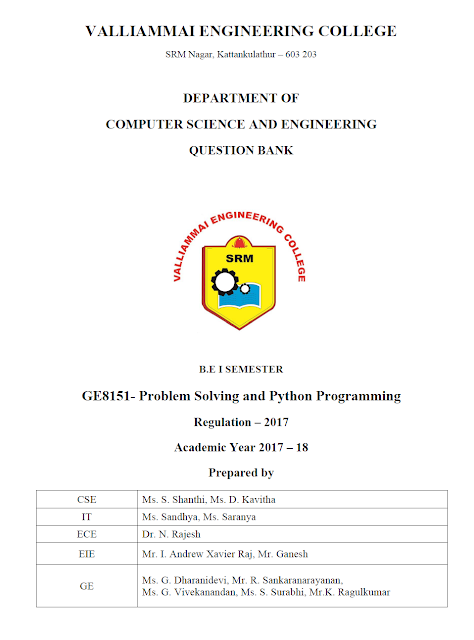Problem Solving and Python Programming - GE3151, GE8151 Anna University ...