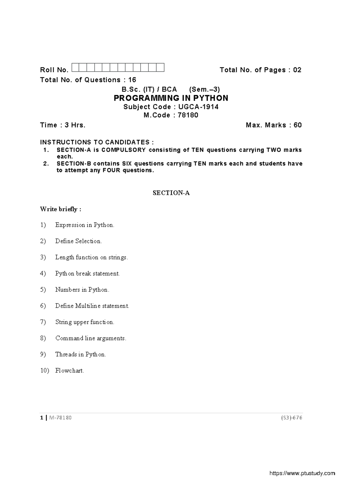 Python Programming Question Paper - B.Sc. BCA S3 (UGCA-78180) - Studocu