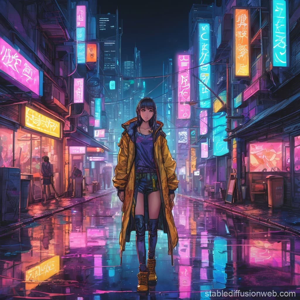 Anime Portrait in Cyberpunk Night City | Diffus