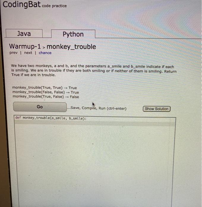 Solved CodingBat. code practice Java Python Warmup-1 > | Chegg.com