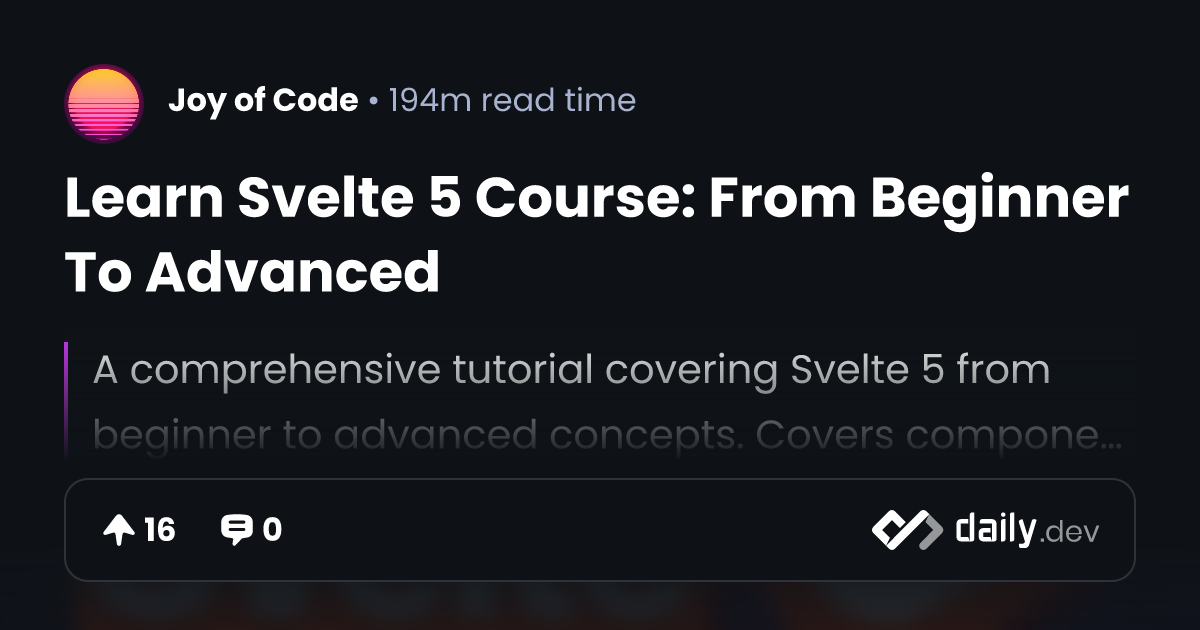 Learn Svelte 5 Course: From Beginner To Advanced | daily.dev