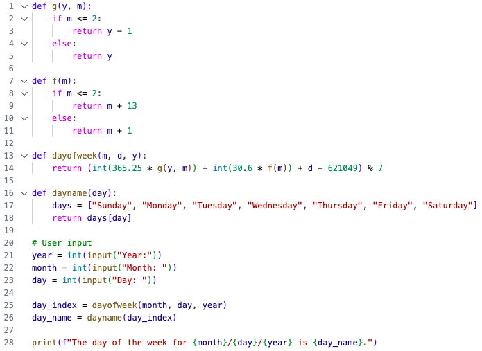 Solved 4 5 7 8 Write a Python program called dayOfWeek.py | Chegg.com