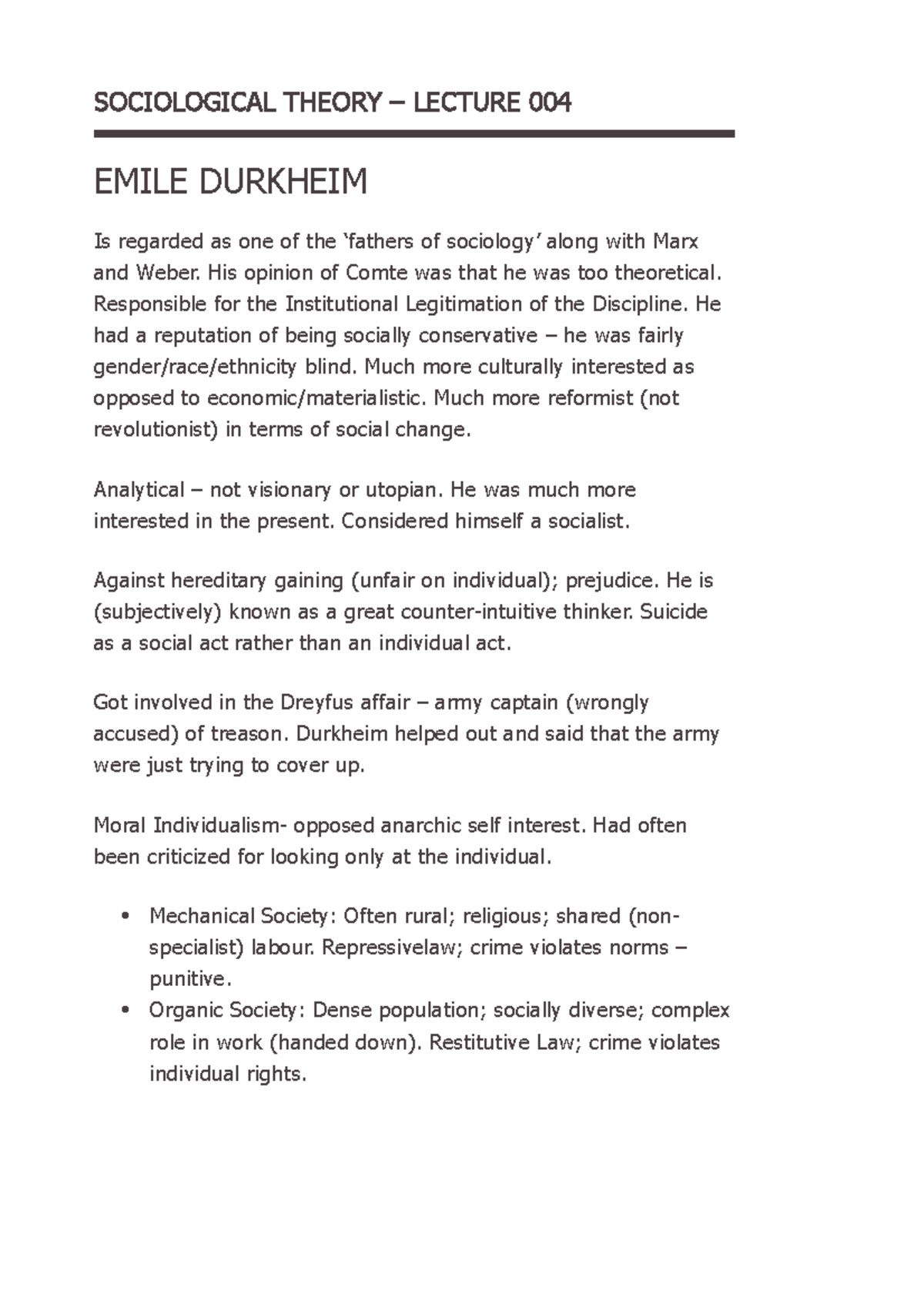 Emile Durkheim Part 1 - SOCIOLOGICAL THEORY – LECTURE 004 EMILE ...