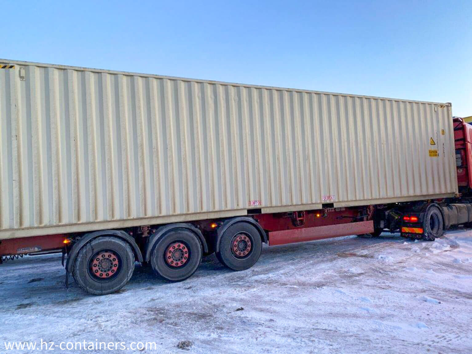 Based on this image's title: “Kontener morski 40 stóp - HZ CONTAINERS.com – HZ CONTAINERS.com”