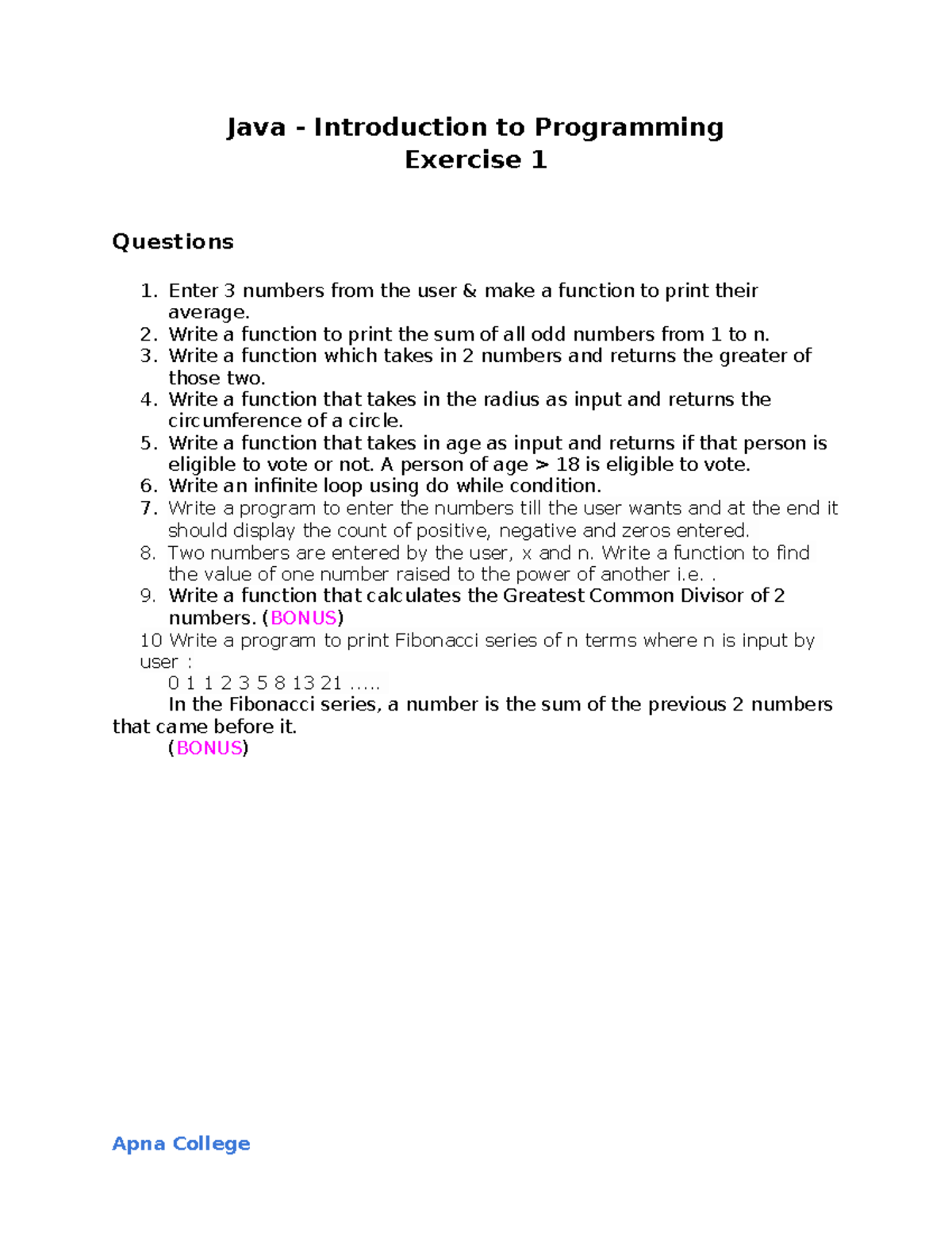Java Exercise 1 - Java by Apna College - Java - Introduction to ...
