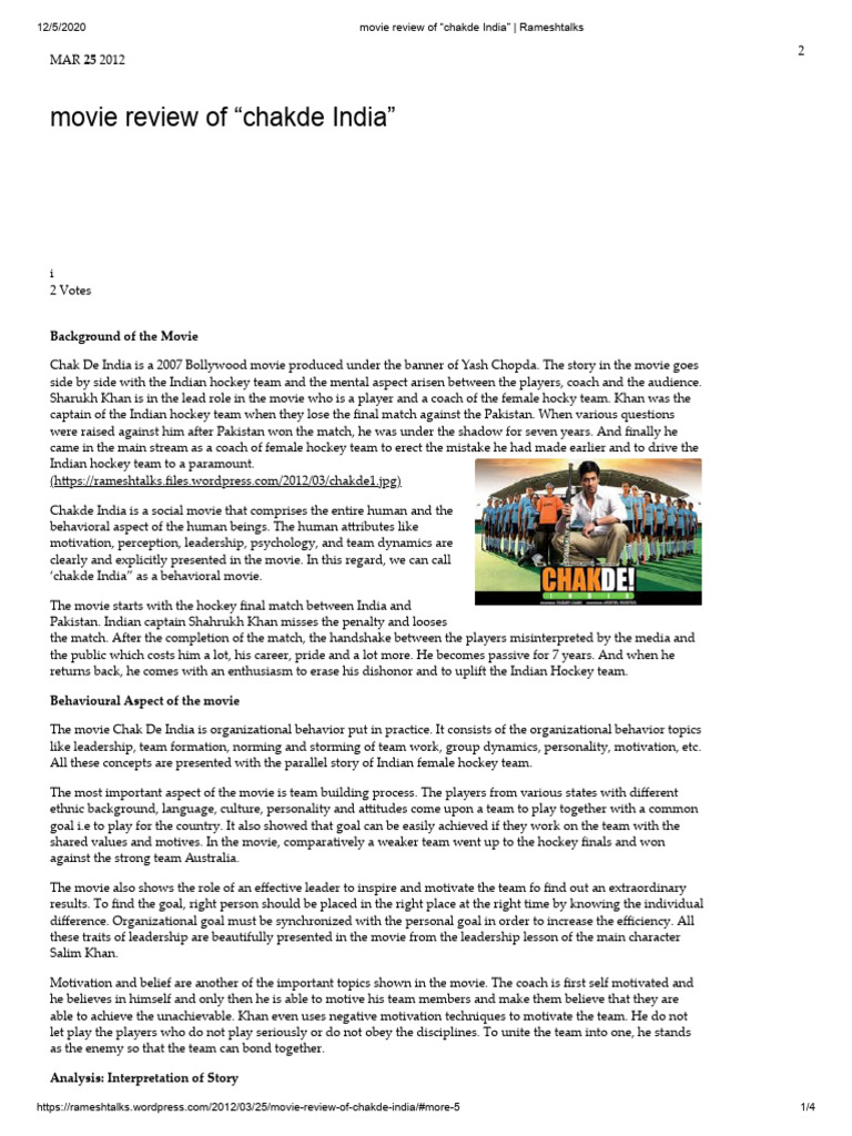 Movie Review of "Chakde India" - Rameshtalks | PDF