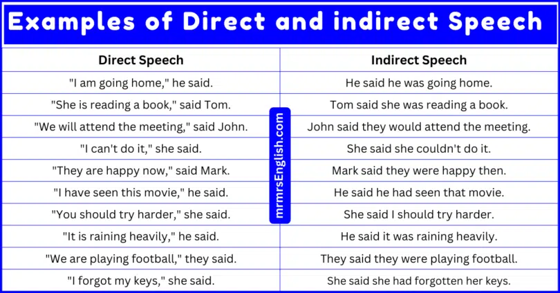 Direct And Indirect Speech Examples