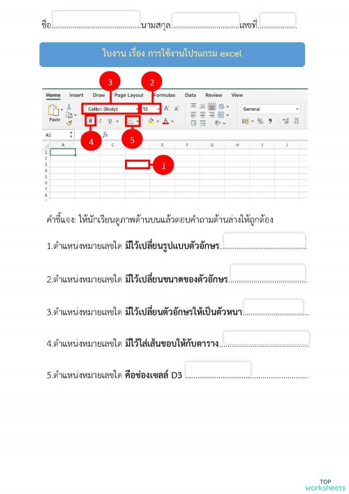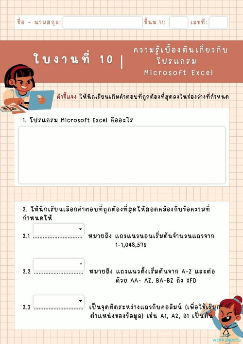 ใบงานการใช้โปรแกรม Excel ใบงานเชิงโต้ตอบ | TopWorksheets