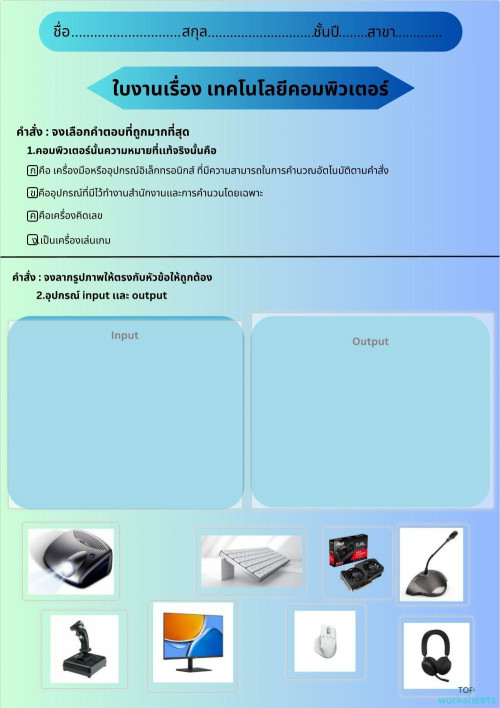 ใบงาน เทคโนโลยีคอมพิวเตอร์. Interactive worksheet | TopWorksheets