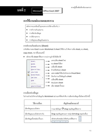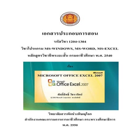 คู่มือการใช้ Excel 2007 | PDF