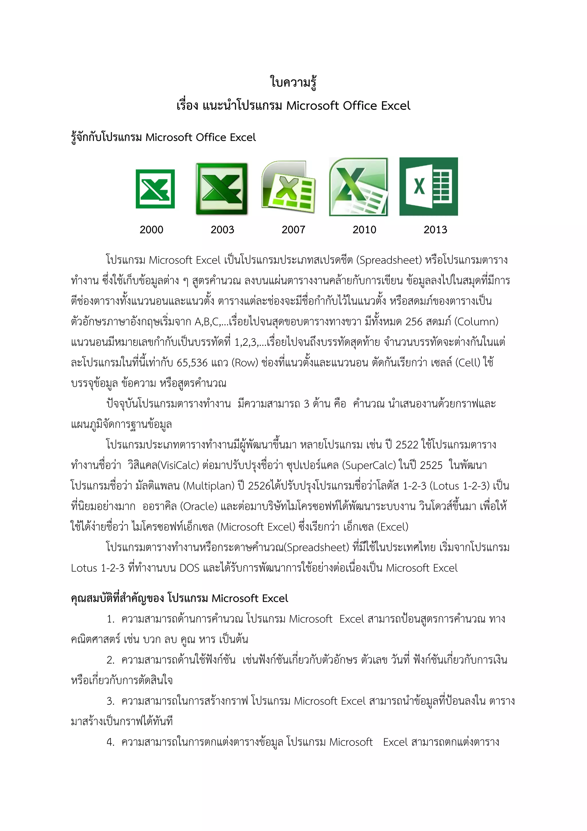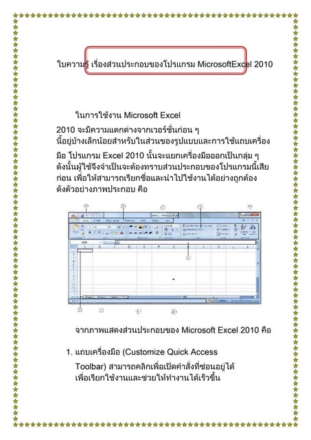 เอกสารประกอบการเรียน โปรแกรม Microsoft Excel 2010 | PDF