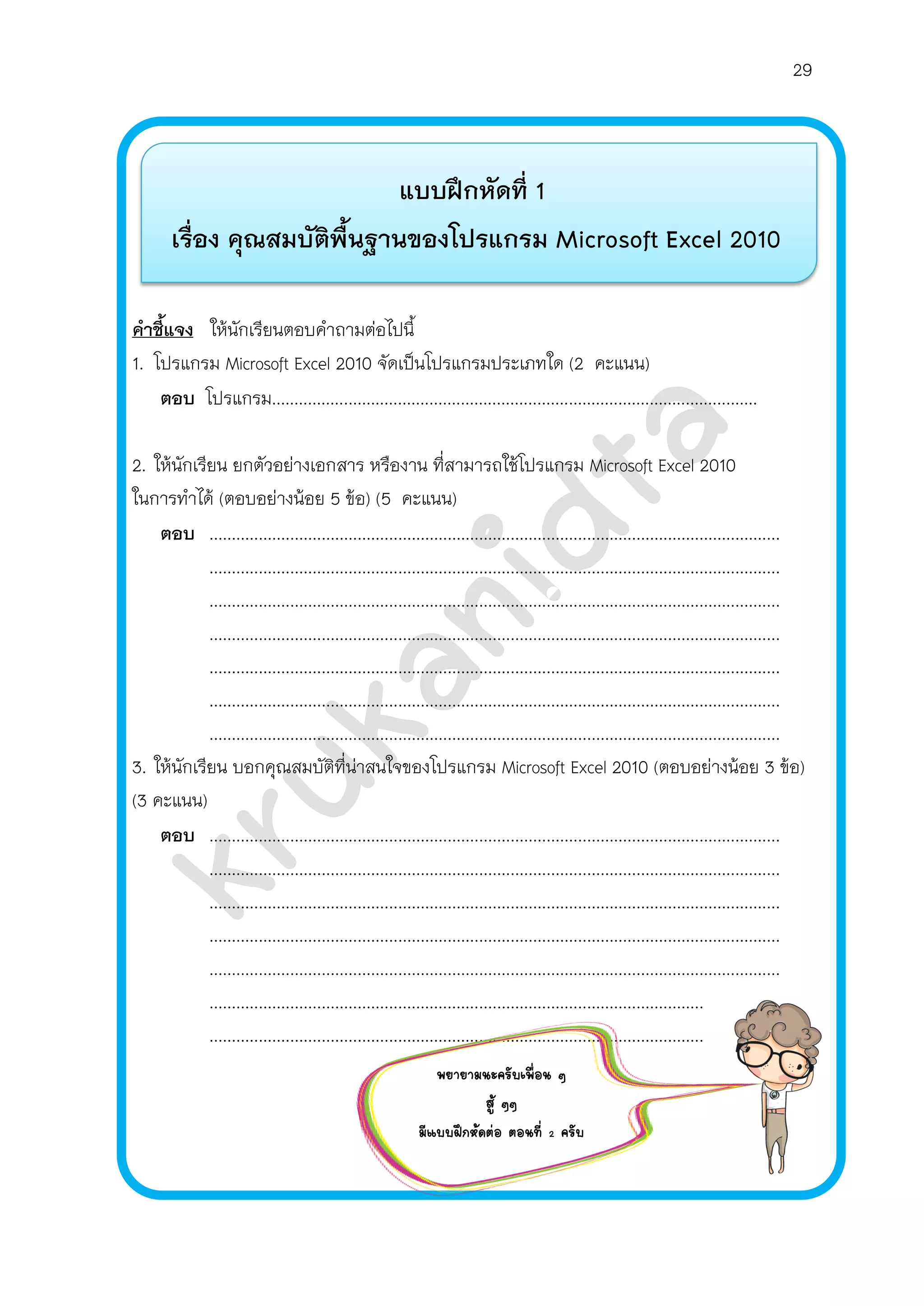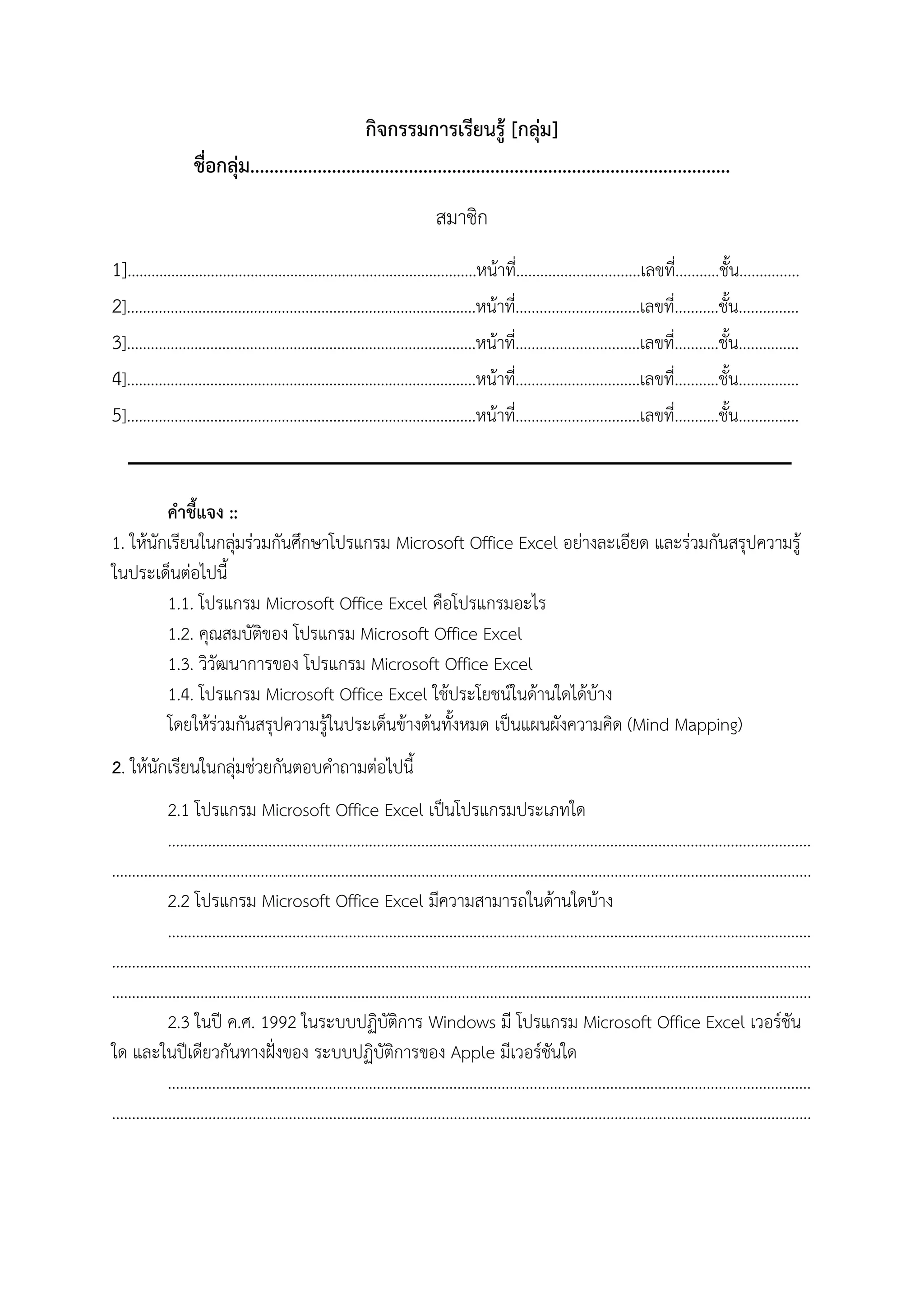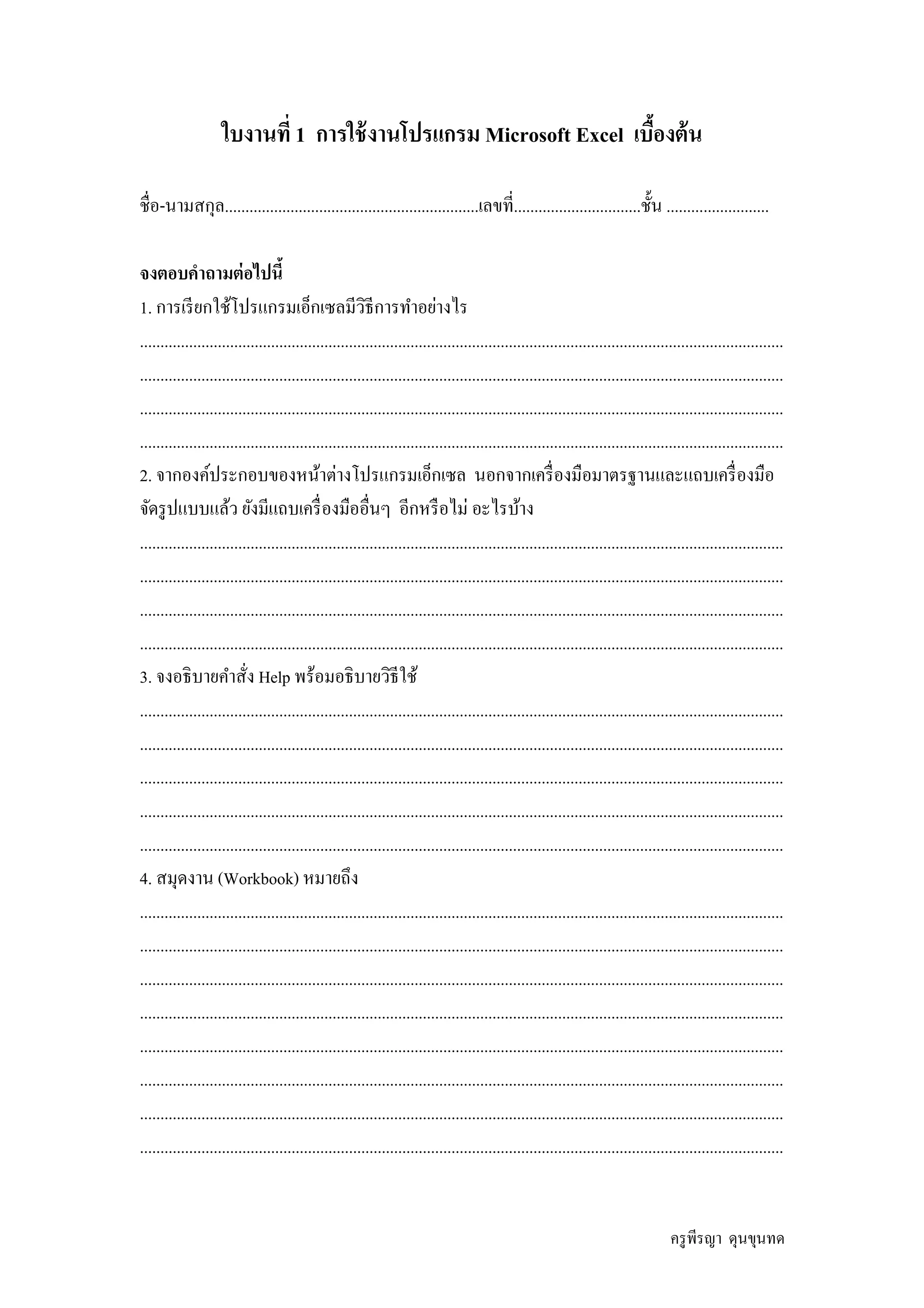 1/6 EXCEL ใบงานที่ 1 ใบงานเชิงโต้ตอบ | TopWorksheets