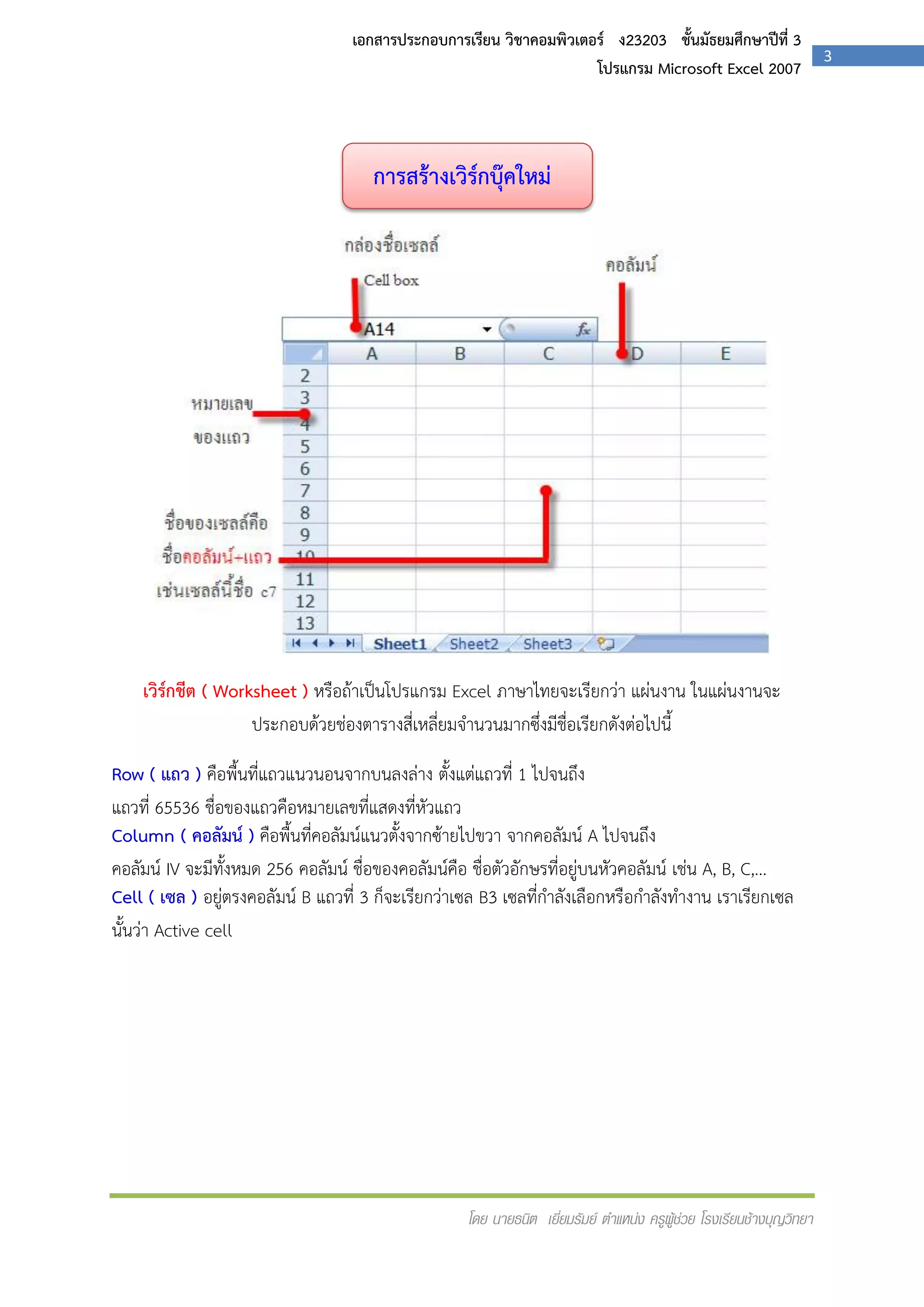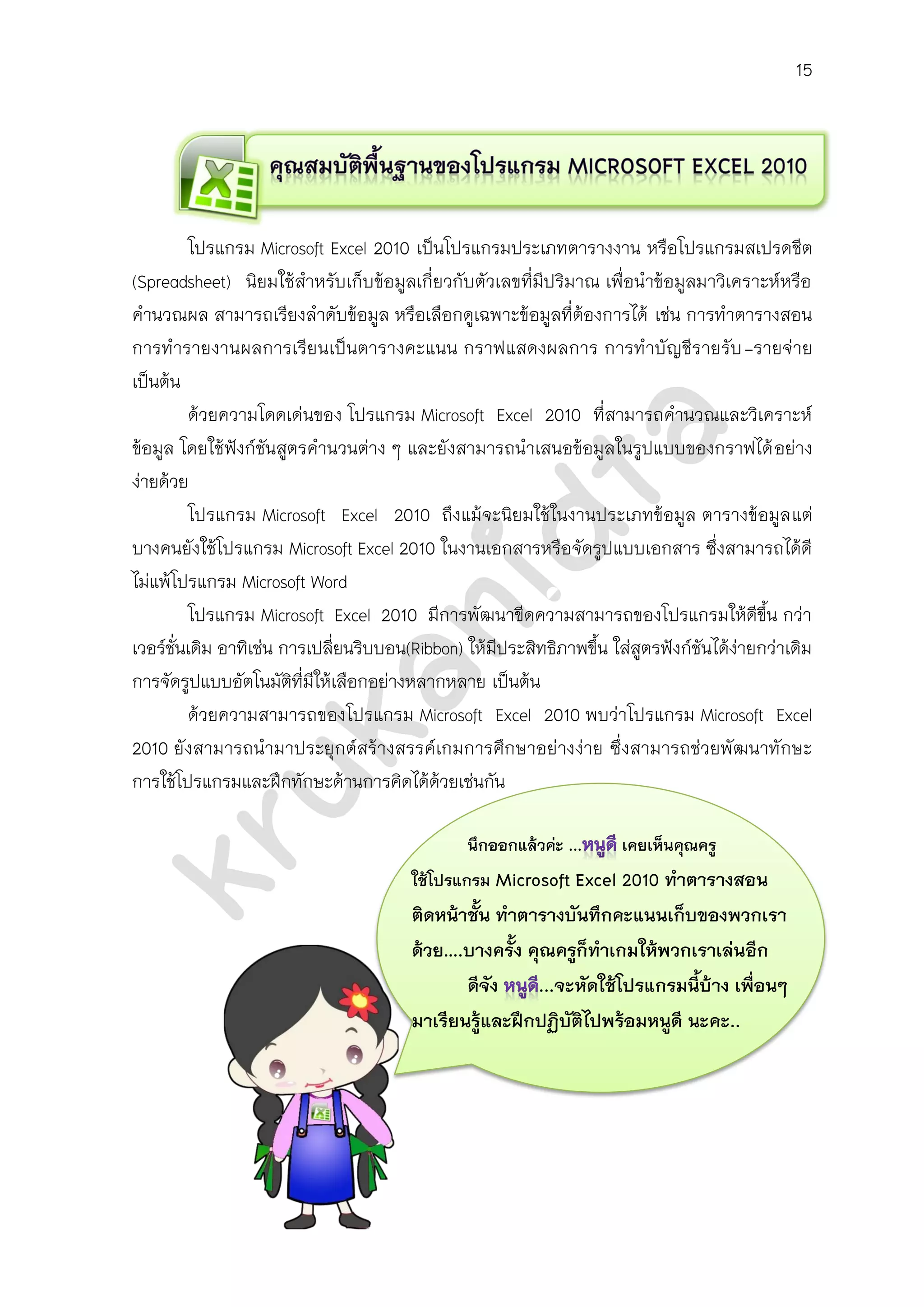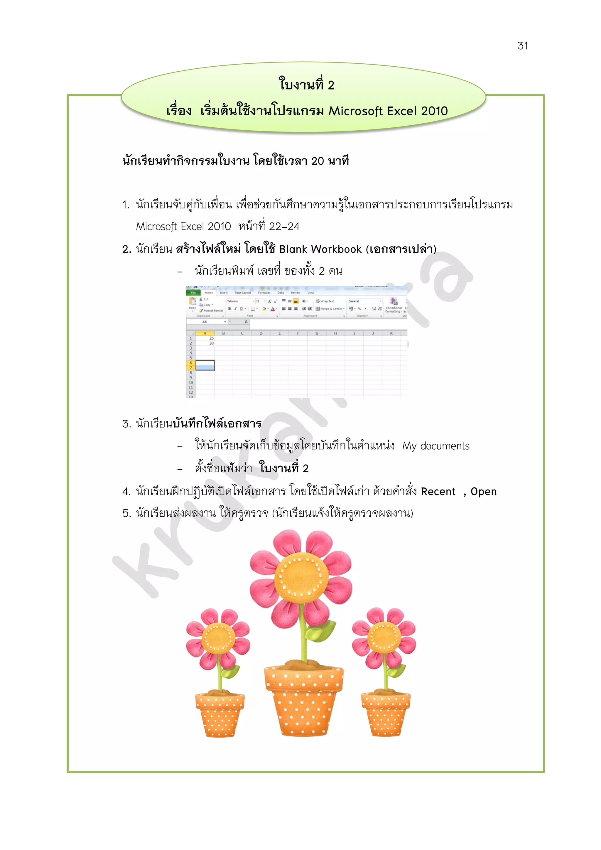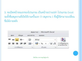 เอกสารประกอบกาเรียน การใช้งานโปรแกรม Microsoft Excel 2010 ผลงานครูณฐกร ...