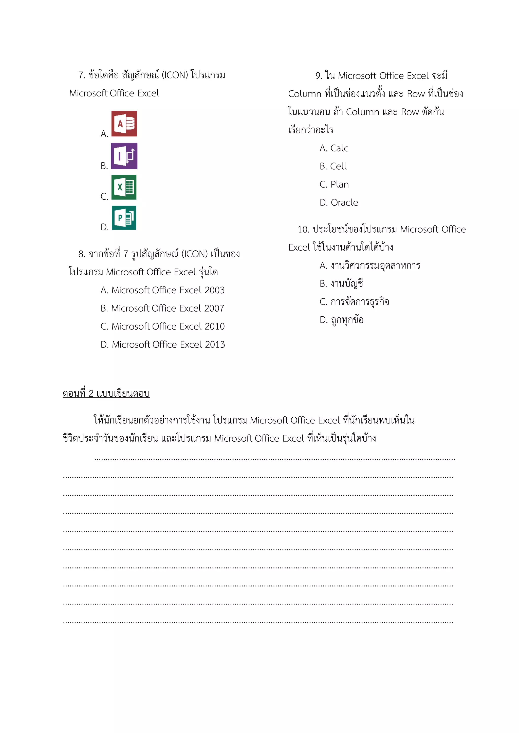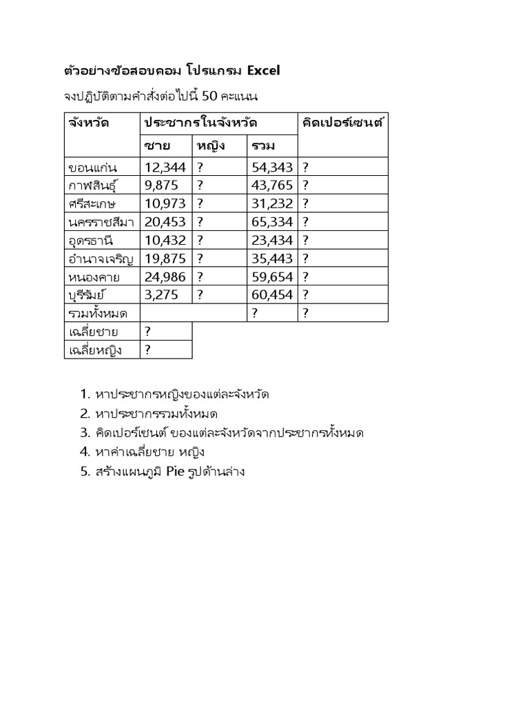 ตัวอย่างข้อสอบคอม มข. โปรแกรม Excel | PDF