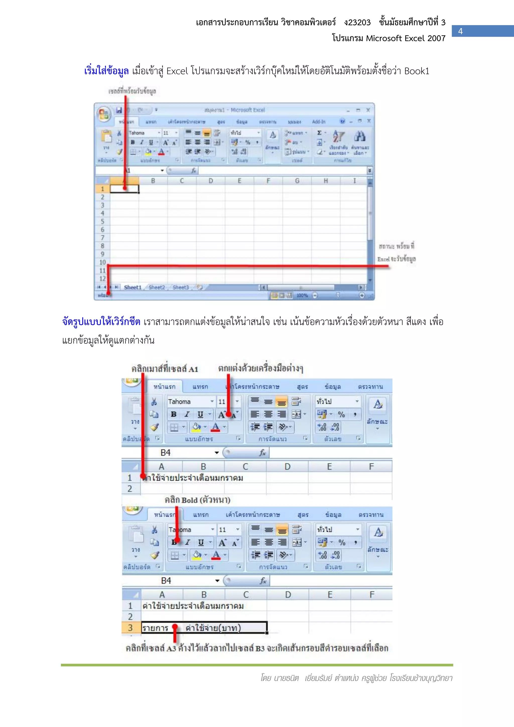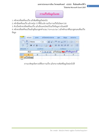 เอกสารประกอบการเรียนวิชา การใช้โปรแกรมคำนวน Excel | PDF