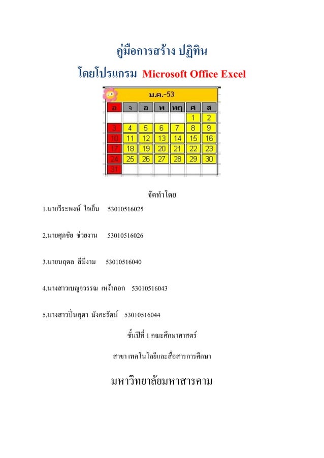 คู่มือประกอบการสร้างปฏิทินจาก Microsoft office excel | PDF