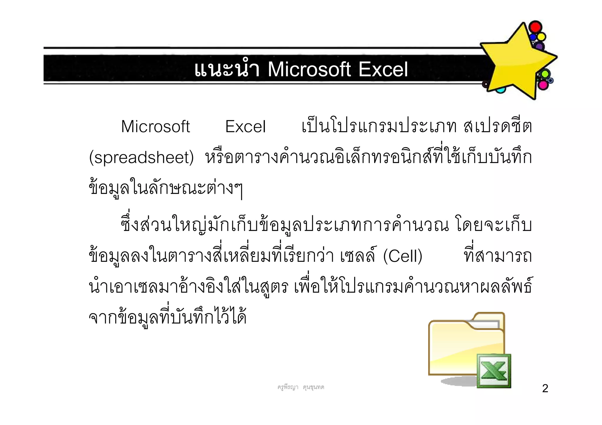 การใช้งาน โปรแกรม Microsoft Excel เบื้องต้น - สื่อออนไลน์ by ครูฝ้าย ...