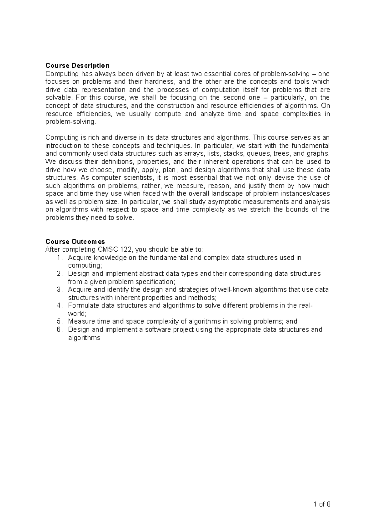 CMSC 122 Course Guide - good - Course Description Computing has always ...