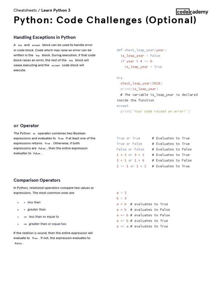 Learn Python 3 Python Code Challenges (Optional) Cheatsheet Codecademyp ...