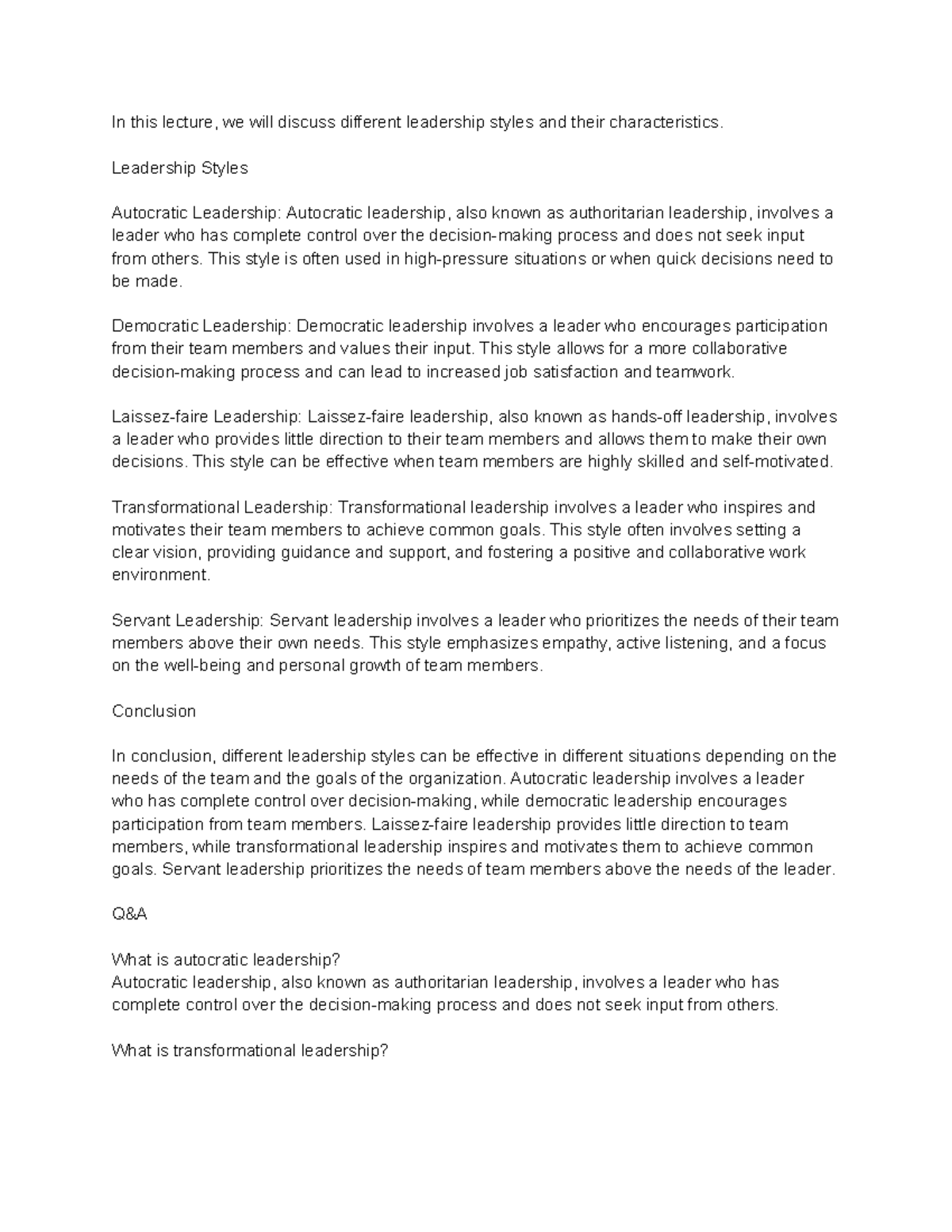 Lecture #35 Leadership Styles - In this lecture, we will discuss ...
