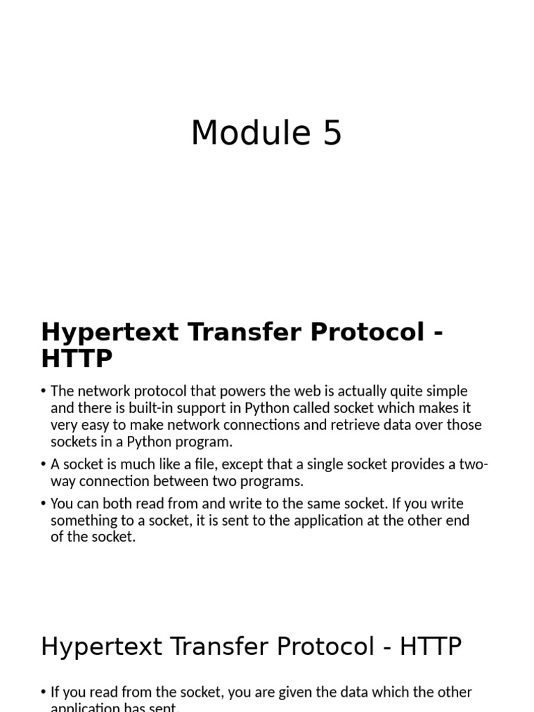 Python module 5 hugh - MODULE – 5 5 NETWORKED PROGRAMS In this era of ...