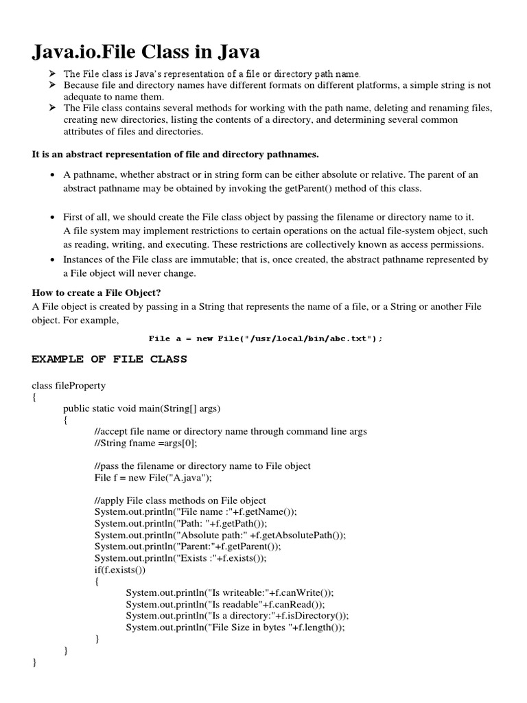 File Class in Java | PDF | Class (Computer Programming) | Method ...