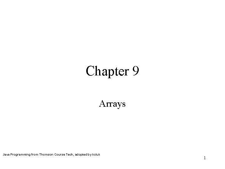 1 Chapter 9 Arrays Java Programming from Thomson Course Tech, adopted ...