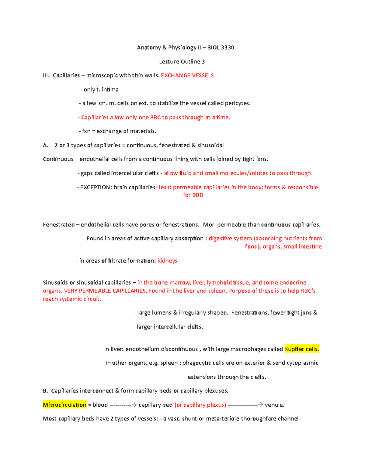 Exam 2 - Blood Vessels Lecture Notes - Anatomy & Physiology II – BIOL ...