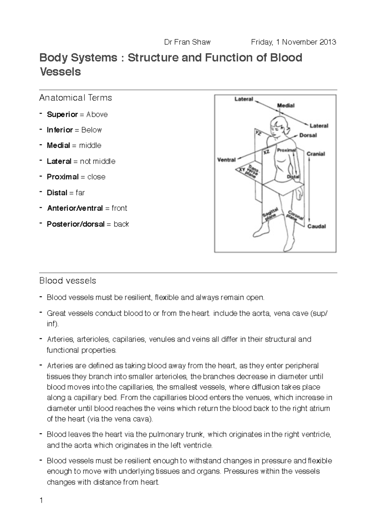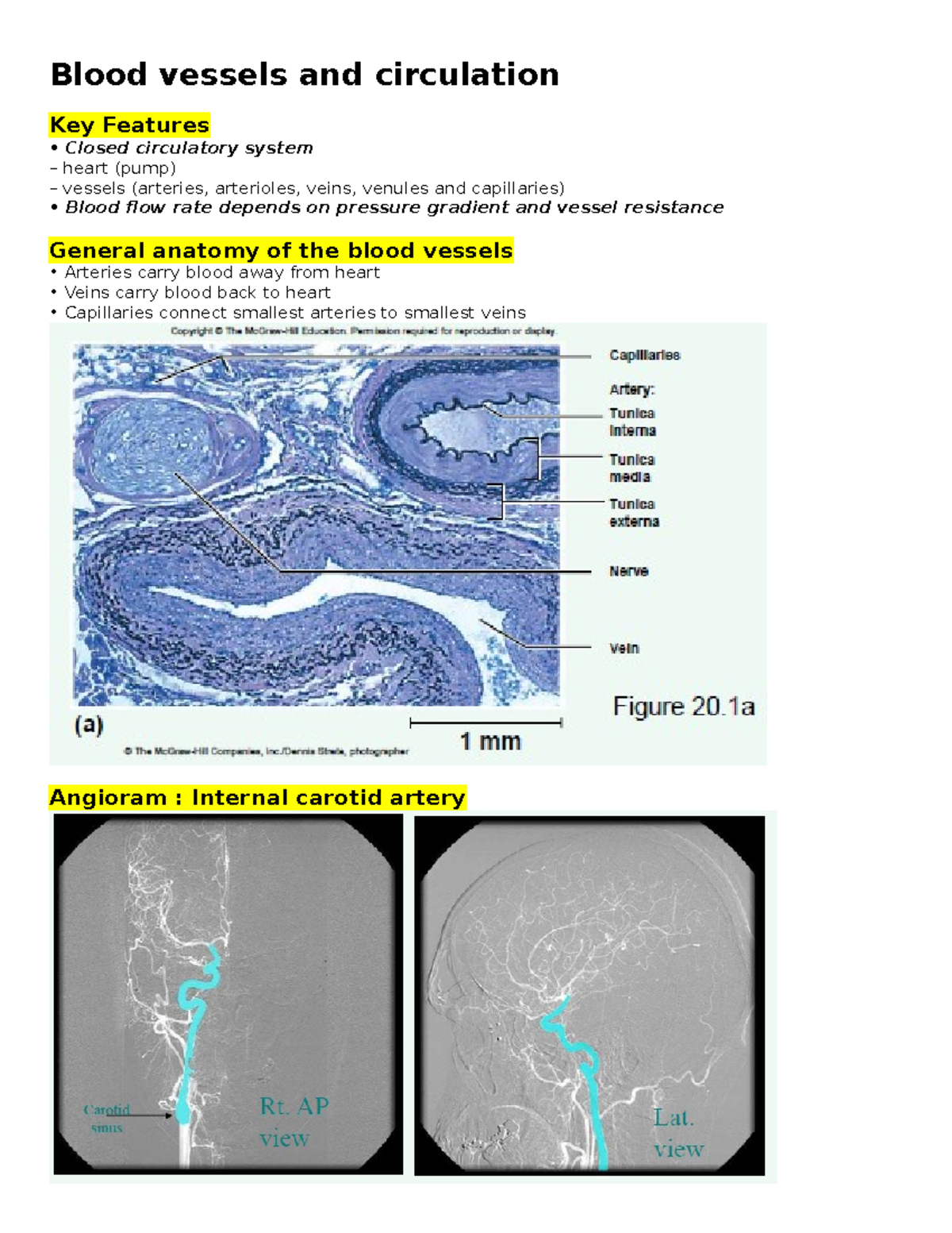 Blood vessels - Anatomy II lecture notes with Anthony Uzwiak for 2021/ ...