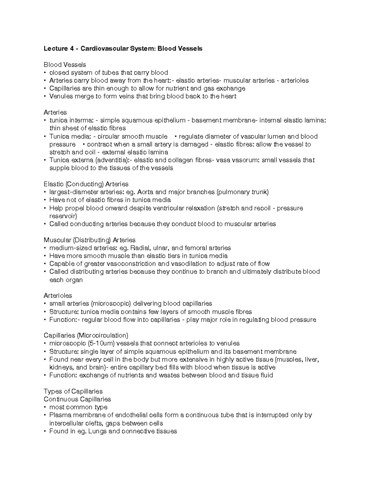 Lecture 4- Cardiovascular System- Blood Vessels - Lecture 4 ...