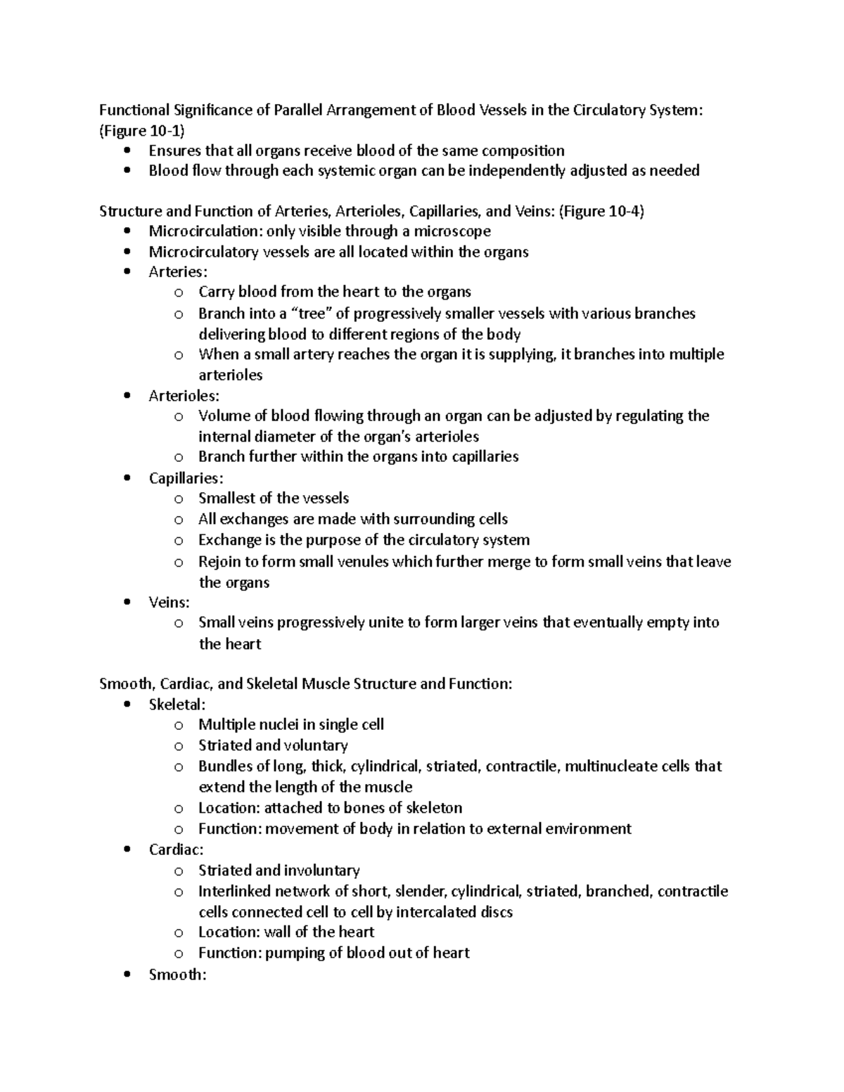 Cardiovascular System (BIOL 101) - Blood Vessels & Circulation Notes ...