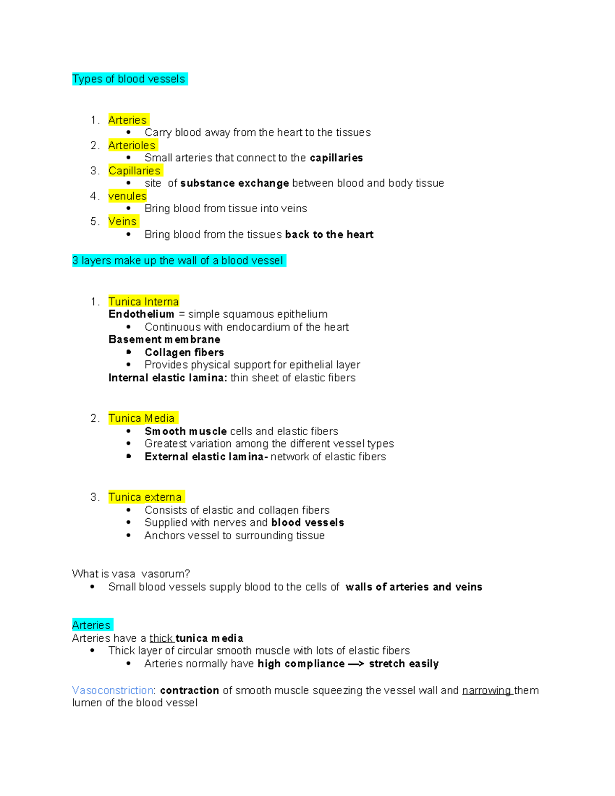 Blood vessels study guide-Su17 - Tagged - Blood vessels TOPICS ...
