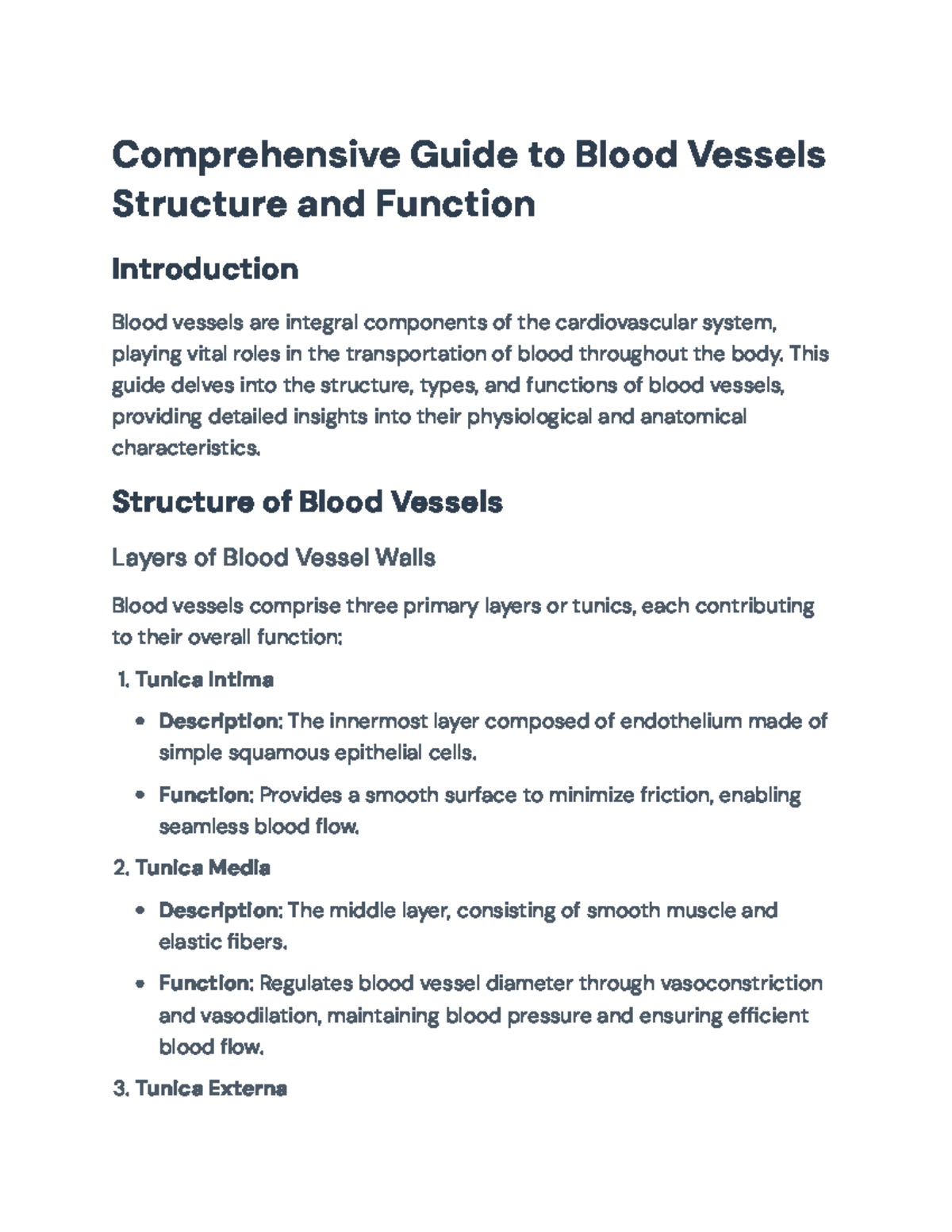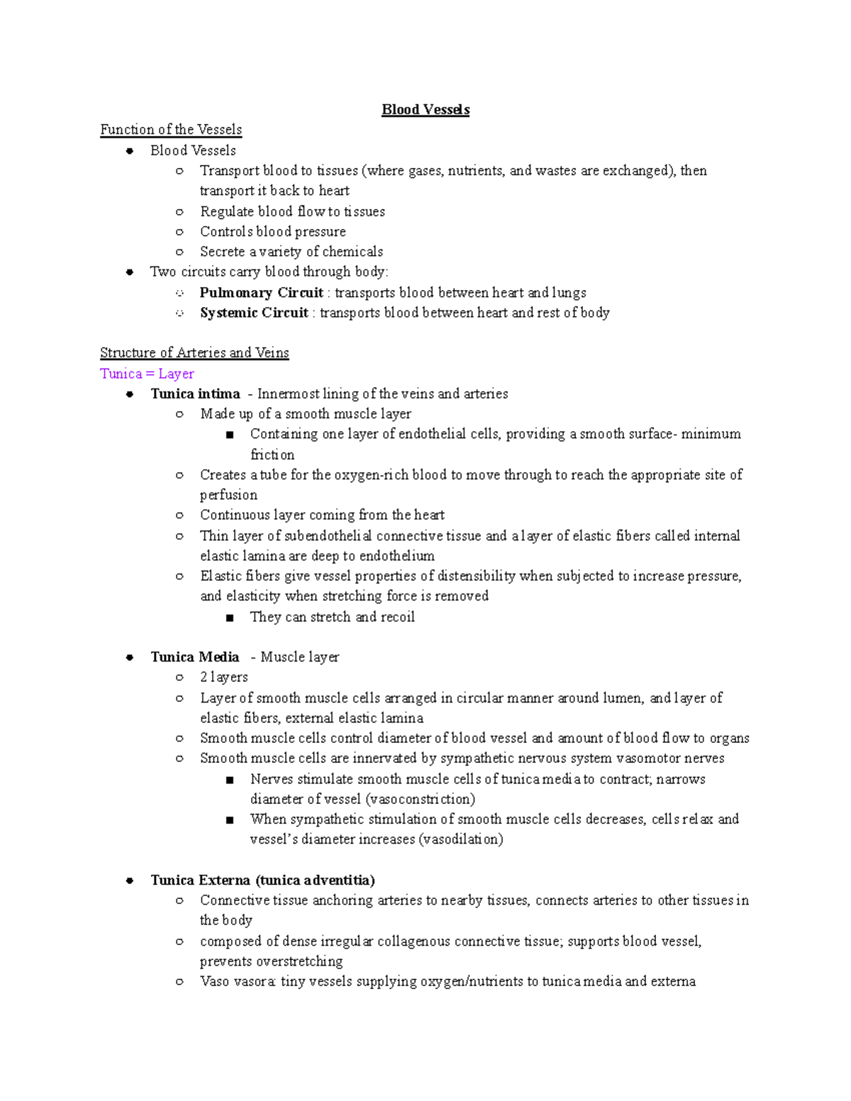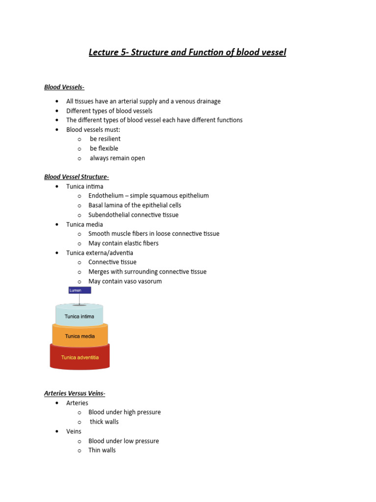 Blood Vessels Notes Detailed Explanation - Studocu