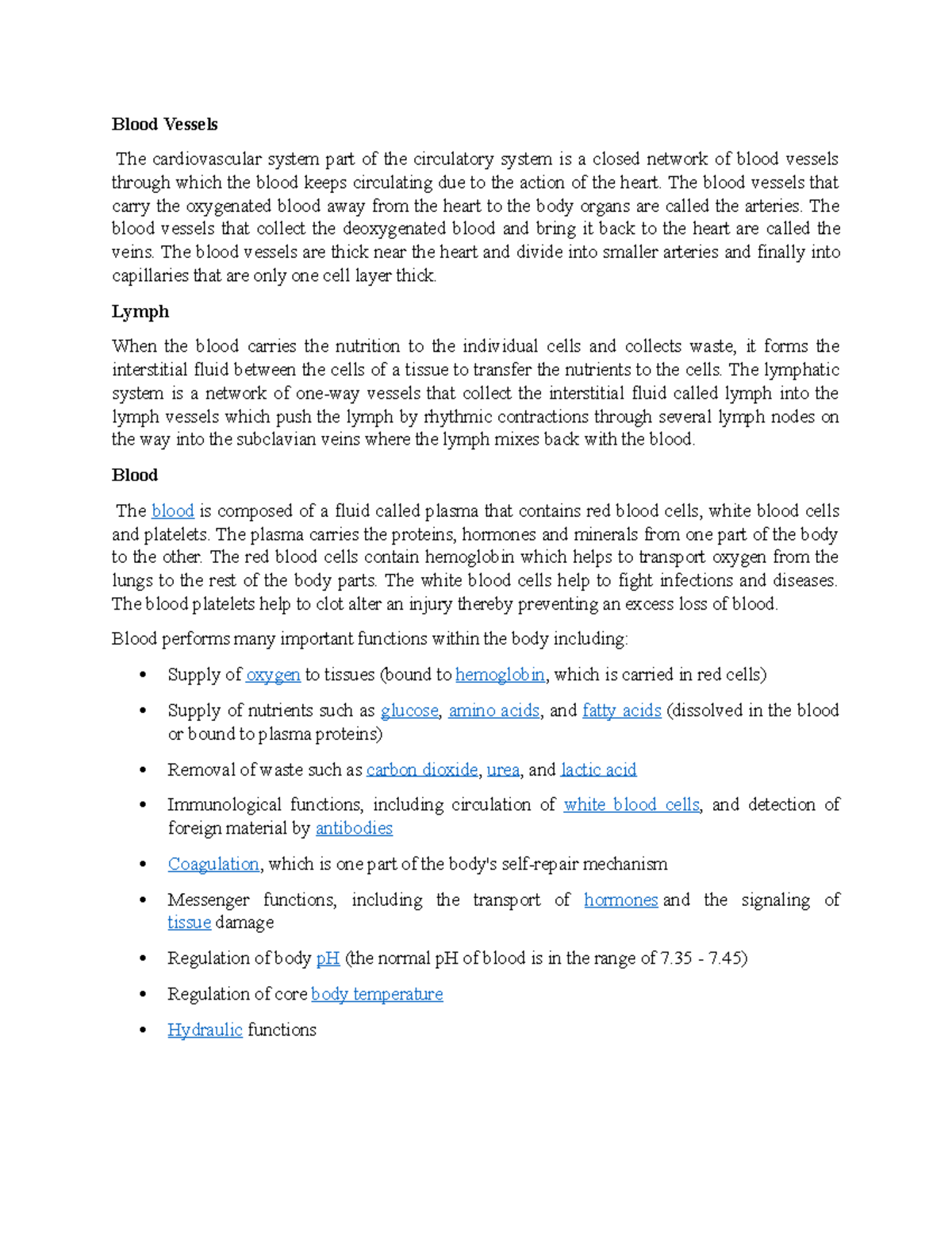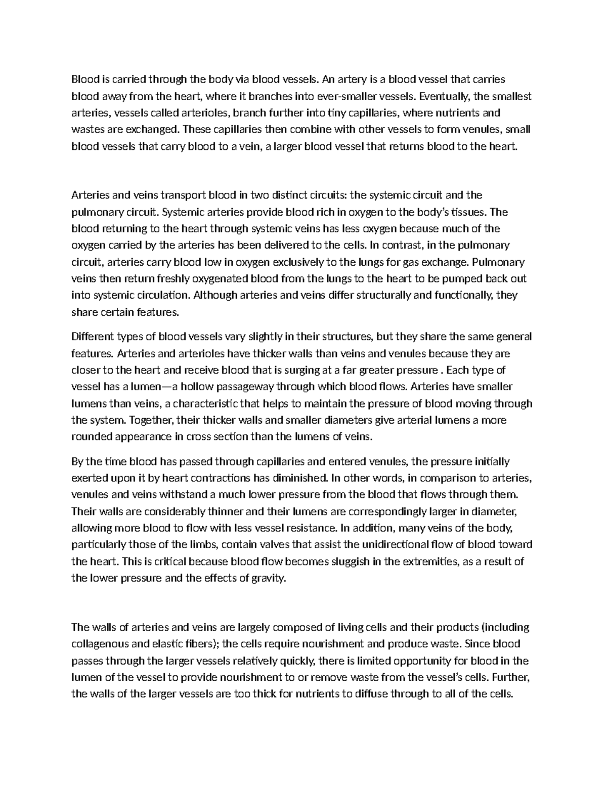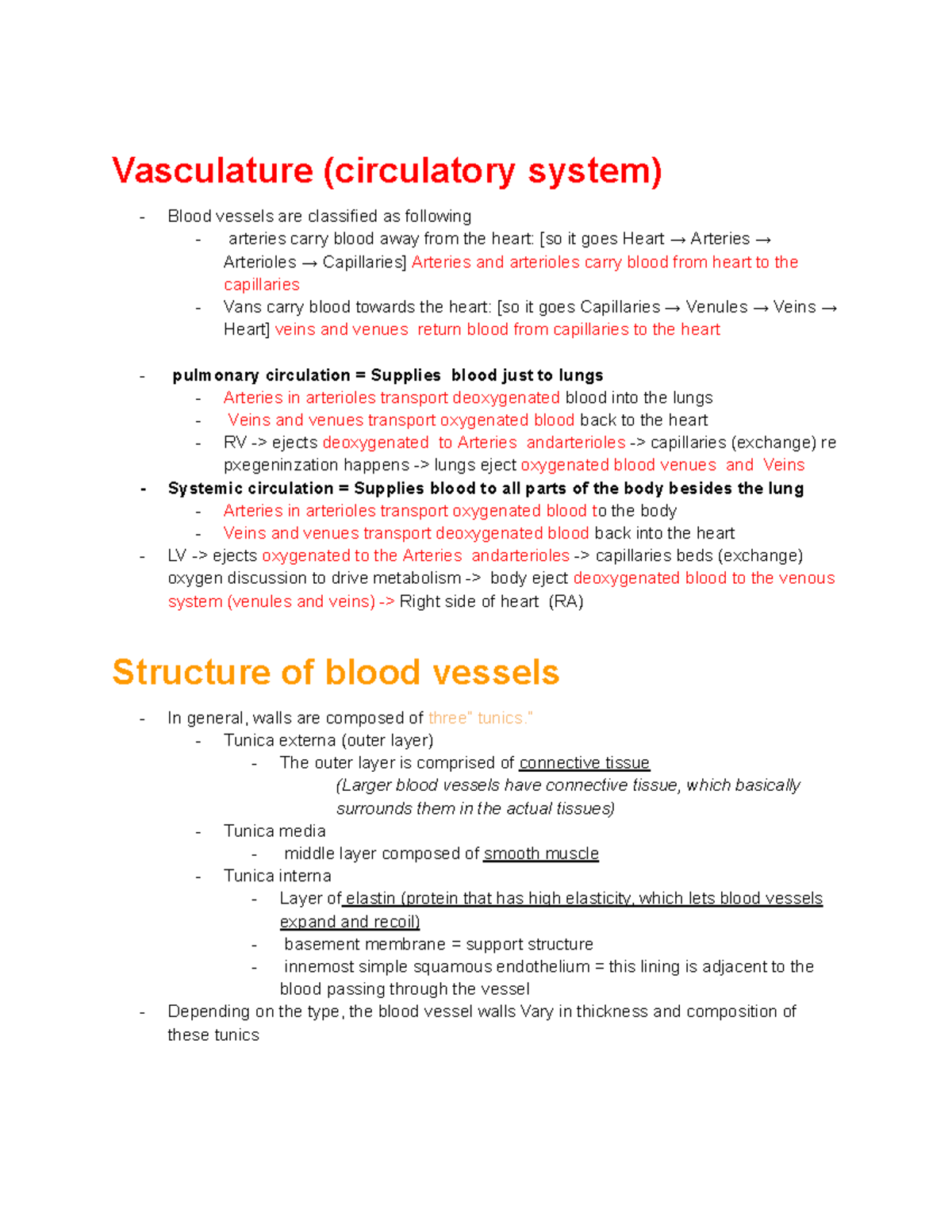 Blood Vessels Notes Detailed Explanation - Studocu