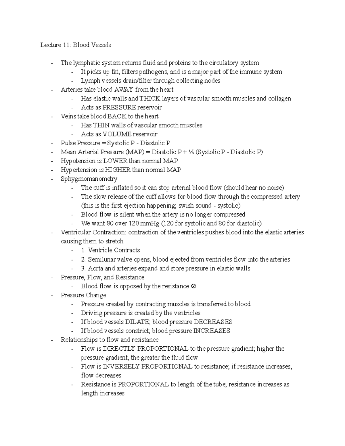 Blood Vessel Notes - Lecture 11: Blood Vessels The lymphatic system ...