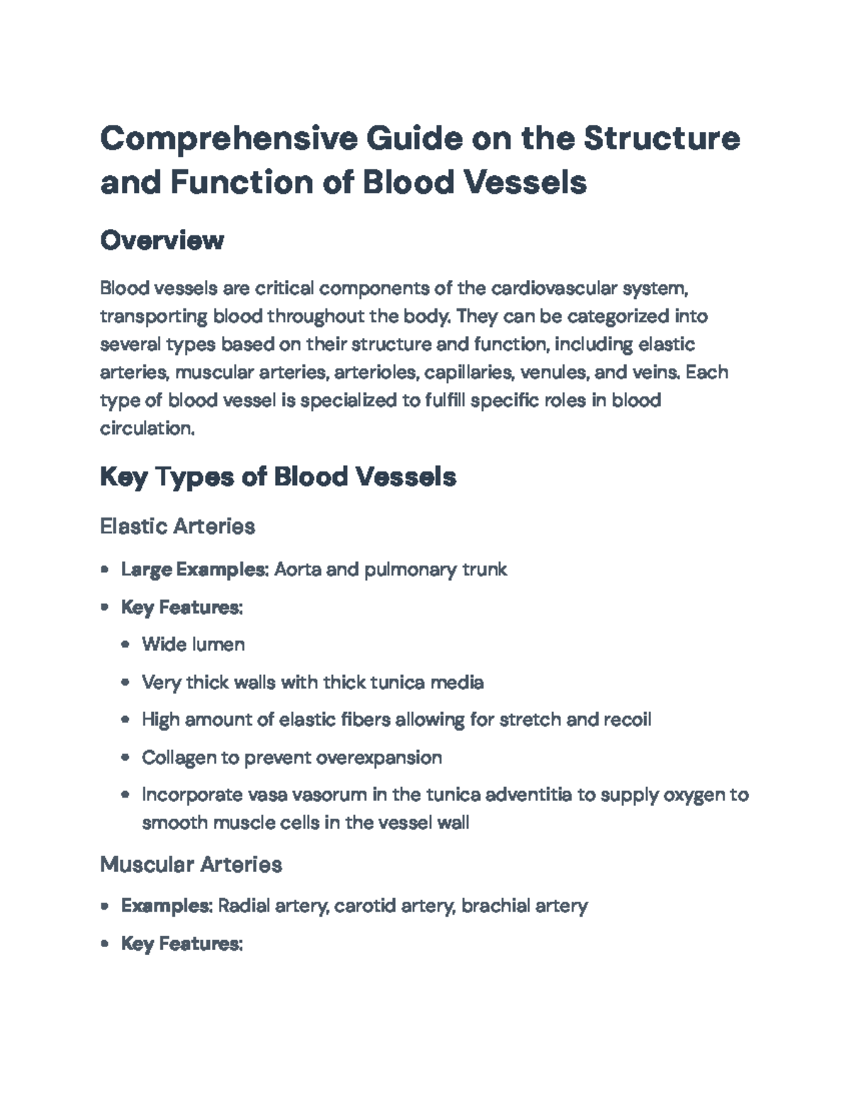 Comprehensive Guide to Blood Vessels Structure & Function ...