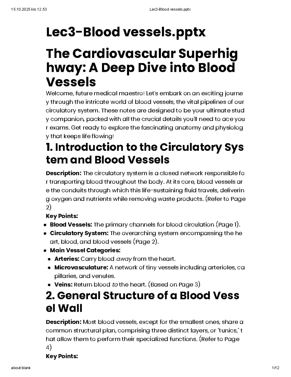 LECTURE NOTE SCRIPT - Blood Vessel - delivery system of dynamic ...