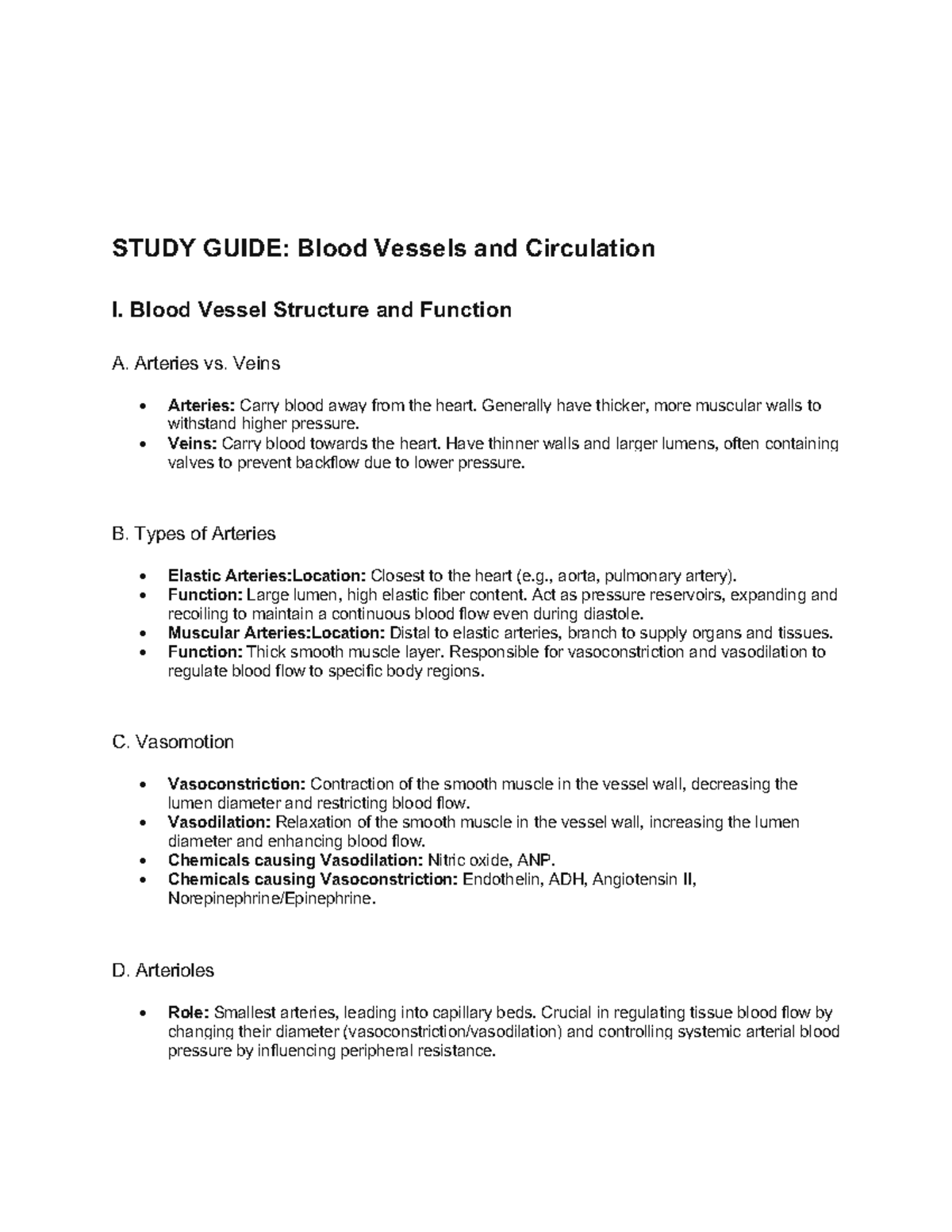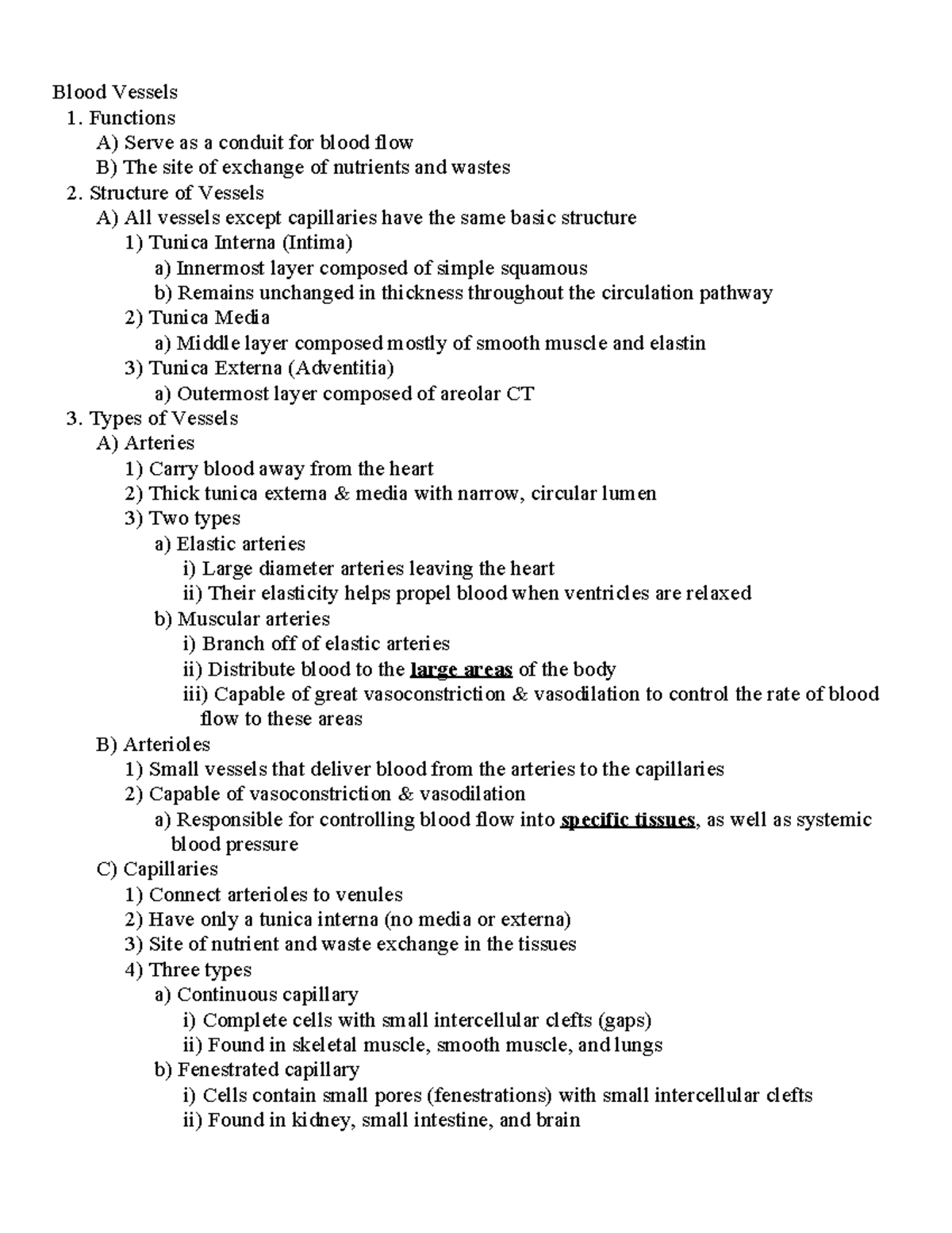 Blood Vessels 1 - Lecture notes 4 - I. Intro to Vessels & Circulation A ...
