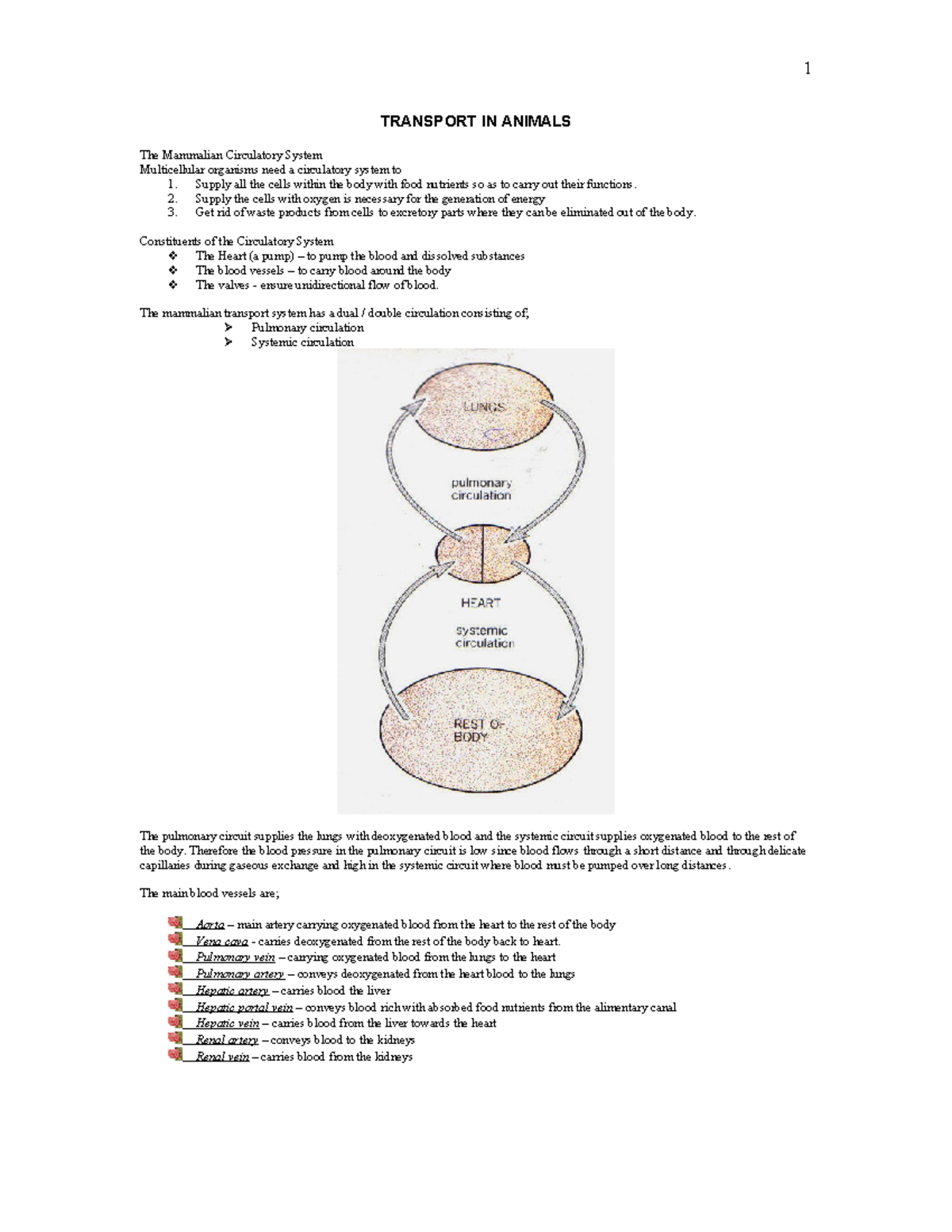 BGCSE 1: Transport in Animals - The Mammalian Circulatory System - Studocu