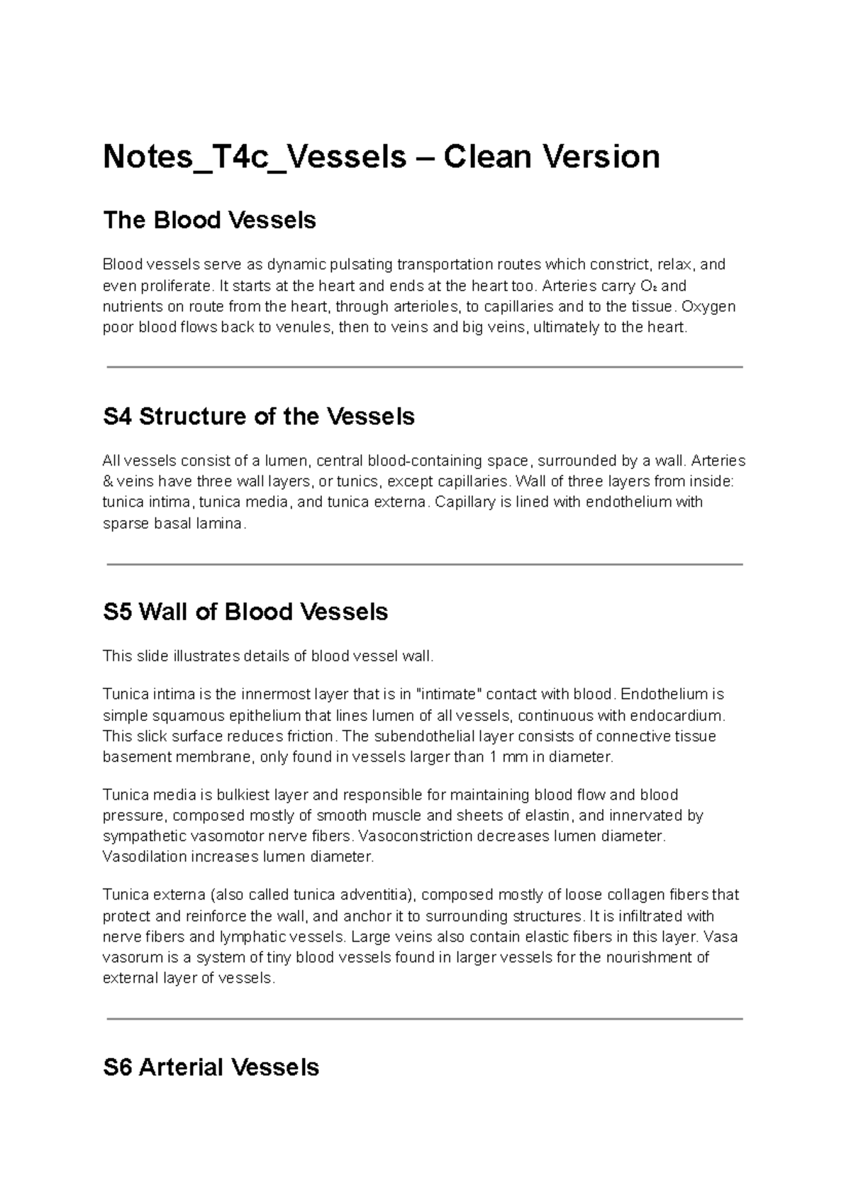 Notes T4c: Blood Vessels Structure and Function Overview - Studocu