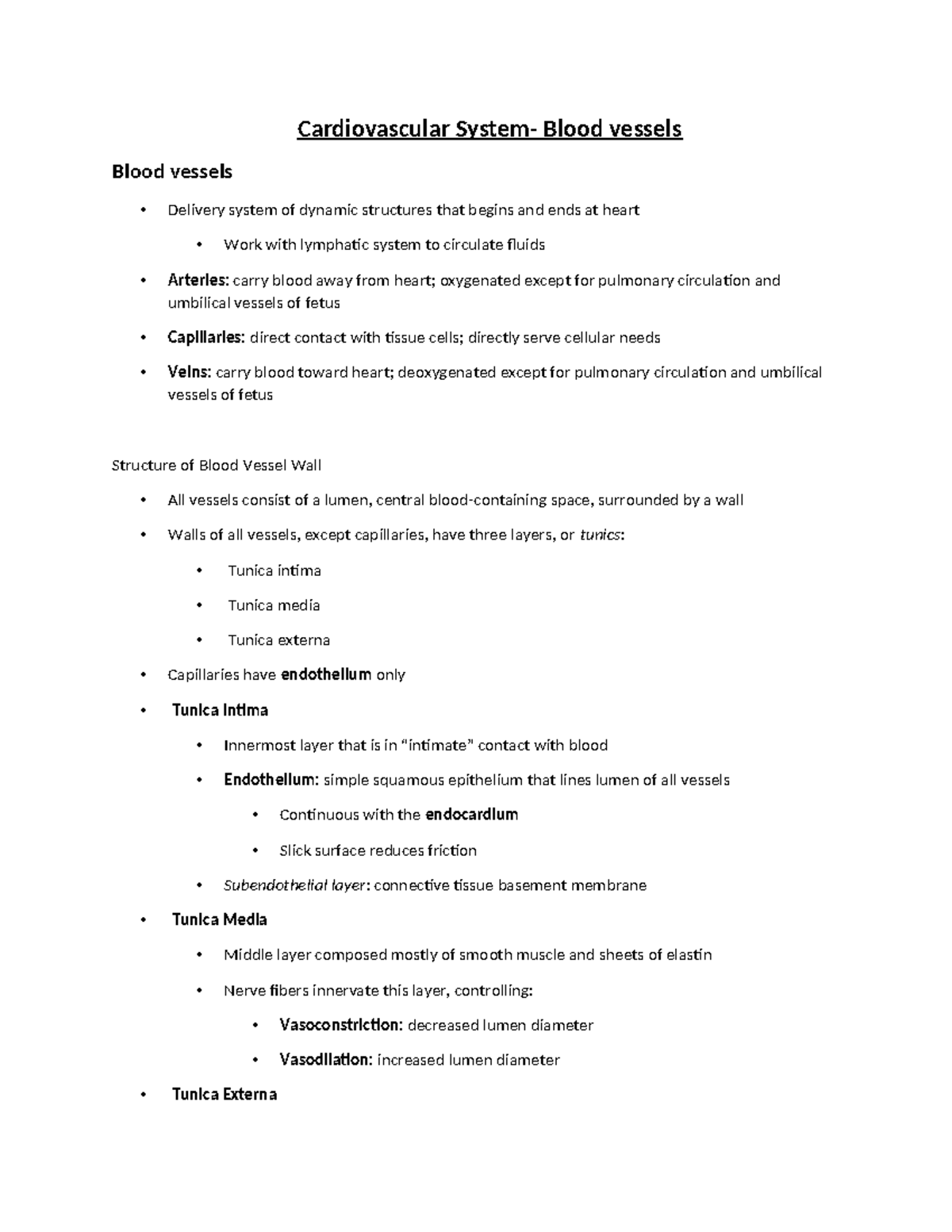 SOLUTION: Blood vessels Notes - Studypool