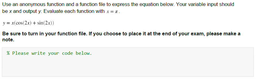 Solved Define an anonymous function for the mathematical | Chegg.com
