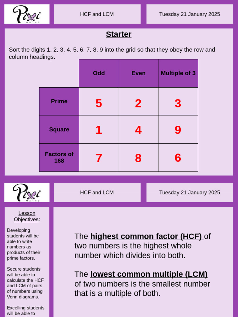 Year 7 - L4 - Use a Venn diagram to calculate HCF and LCM - Worksheets ...