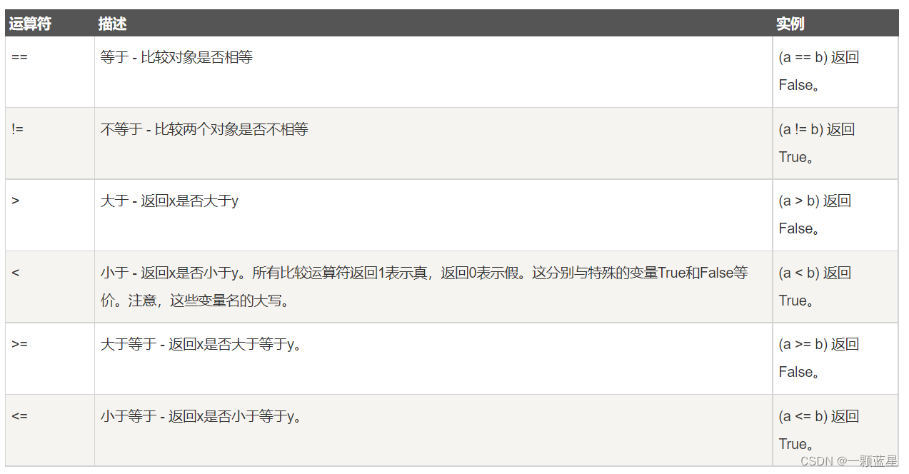 一步一步学python之(9)运算符与表达式_python的比较运算符与比较表达式-CSDN博客