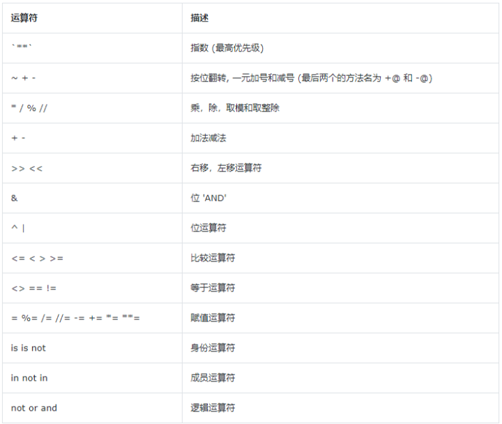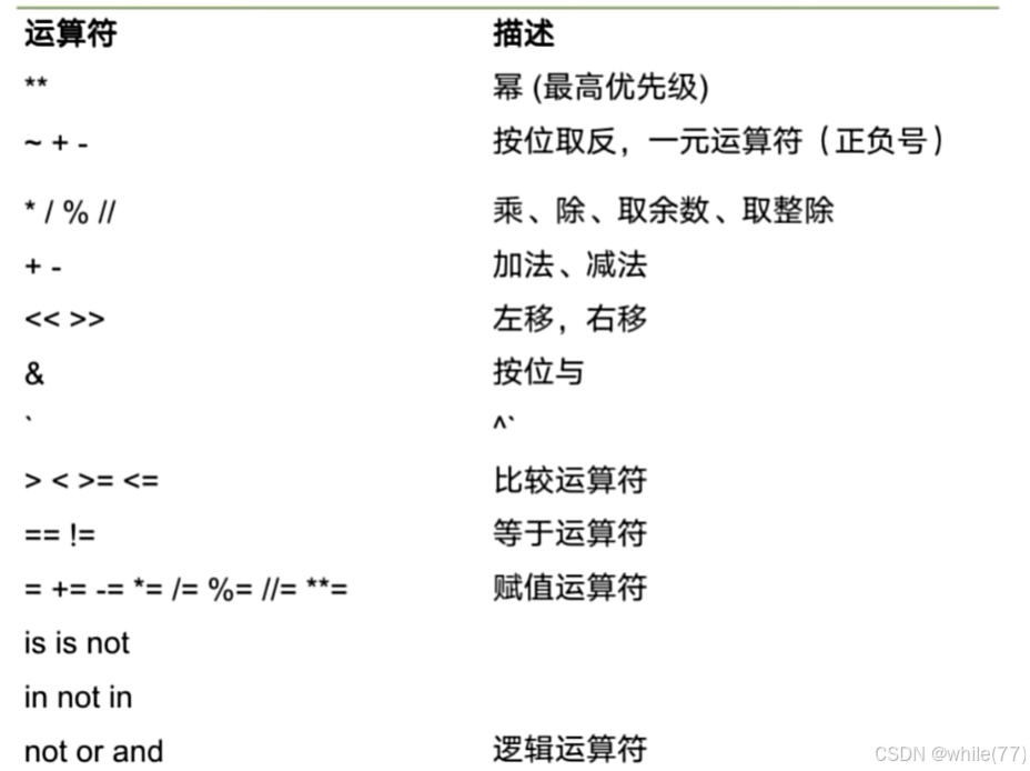 Python中的所有运算符以及运算符的优先级_python运算符优先级顺序-CSDN博客