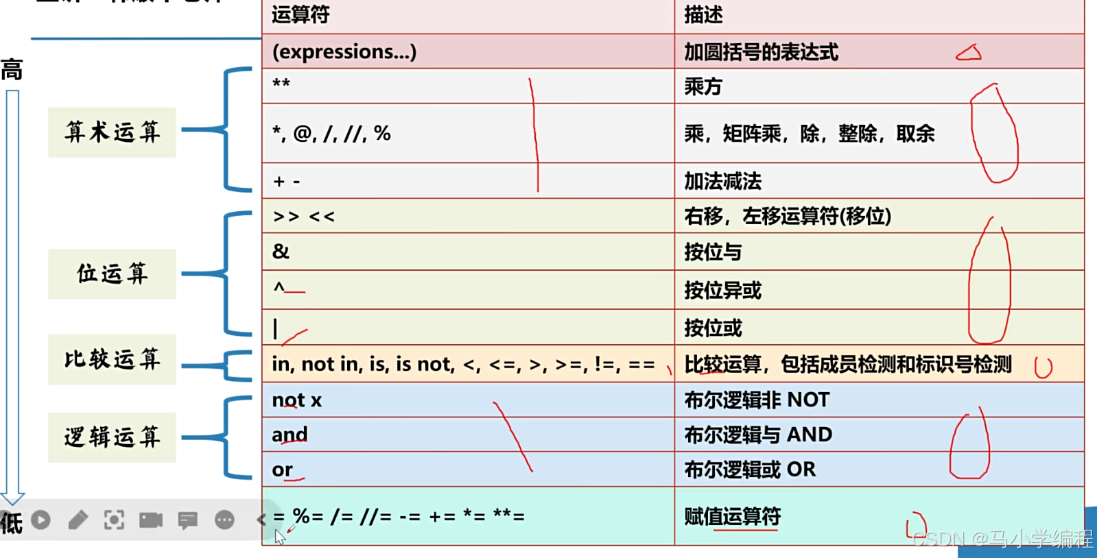 3.第三章节python中所有运算符运算规则和优先级最详细解释(算术运算符、复制运算符 、比较运算符 、逻辑运算符 、位运算符)_python ...
