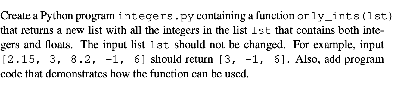 Solved Create a Python program integers.py containing a | Chegg.com