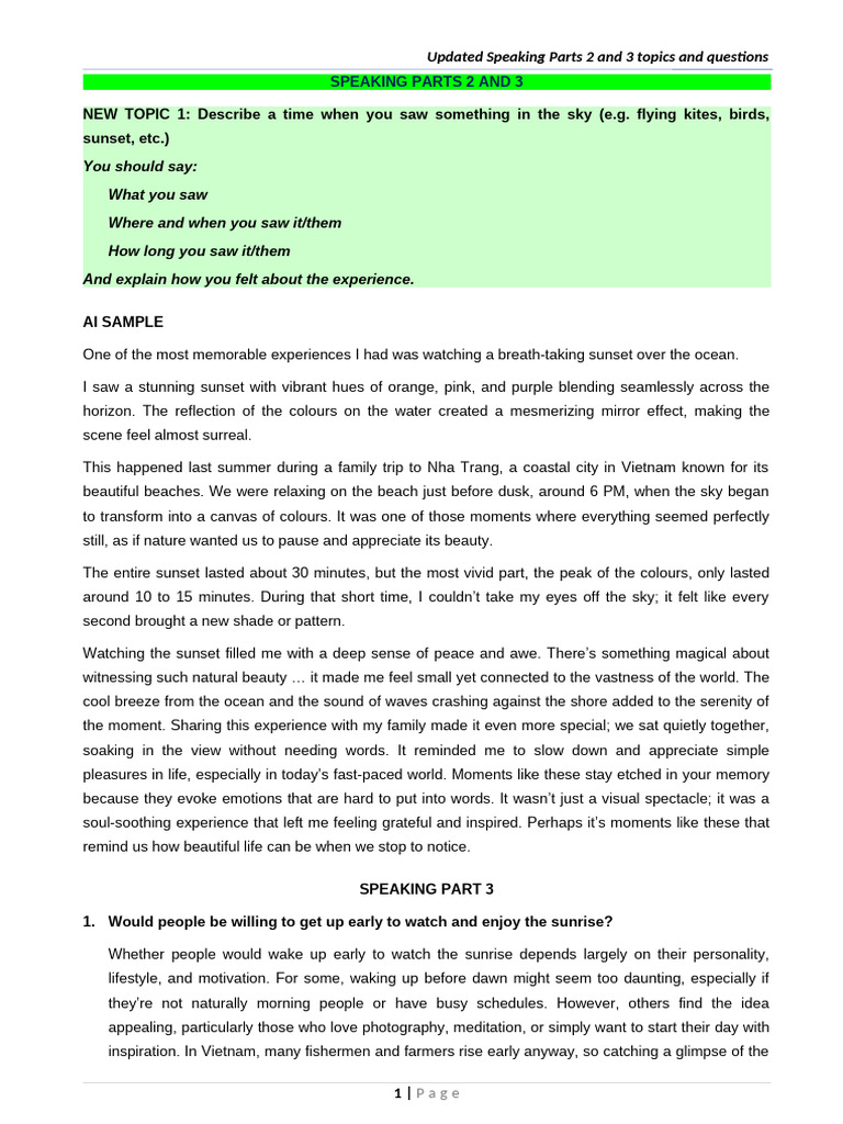 Latest Speaking Parts 2 and 3 Topics | PDF | Sky | Educational Technology